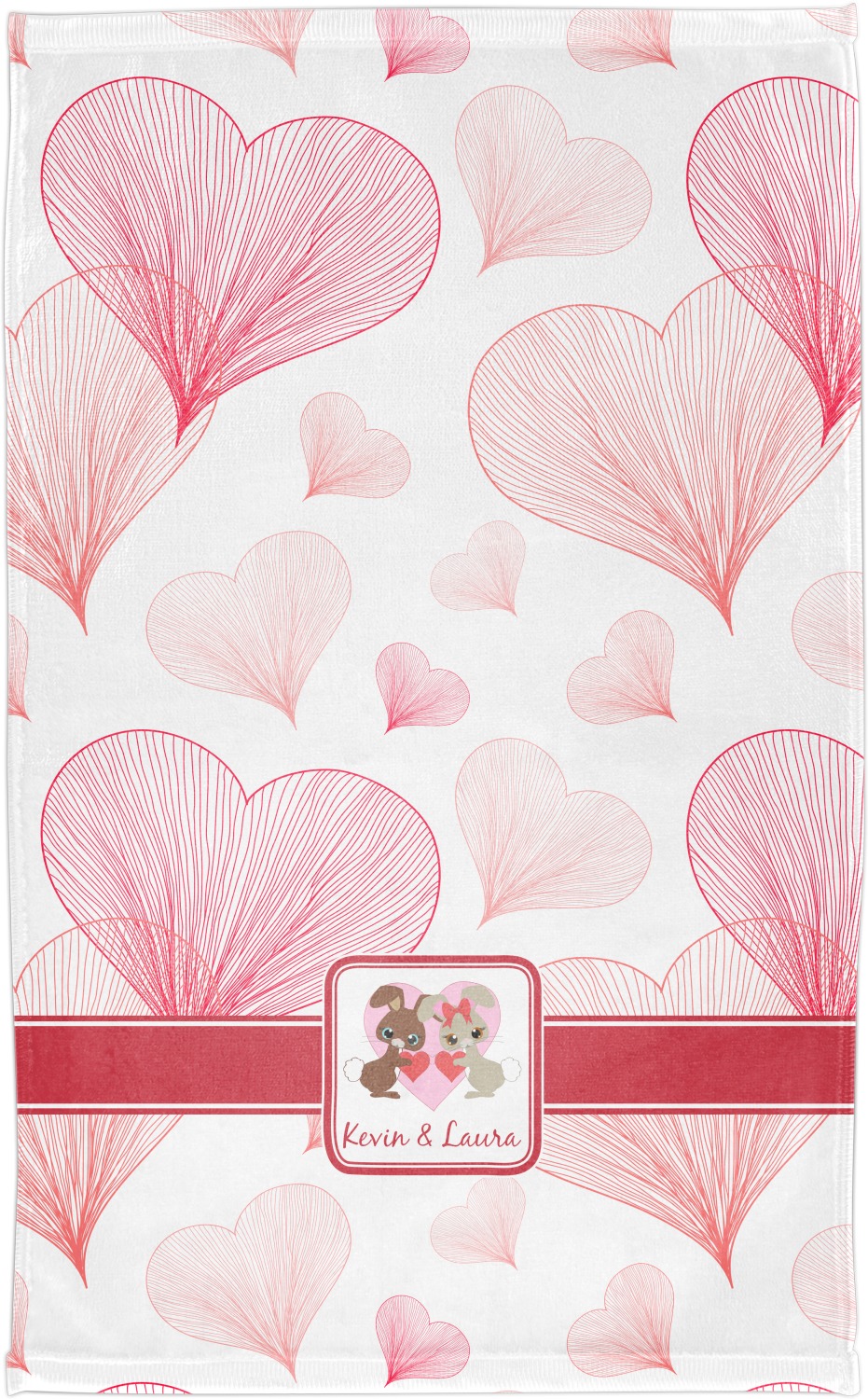 These decorative fingertip towels feature two textures, giving you a luxurious feel while displaying your customization. The front of this towel is crafted from a soft, smooth polyester and displays your design in bold, vibrant colors, across the entire face. The back of this personalized towel is made from white, cotton terry loops, making these towels very absorbent and plush. Each white fingertip towel measures at approximately 11 by 18 inches.