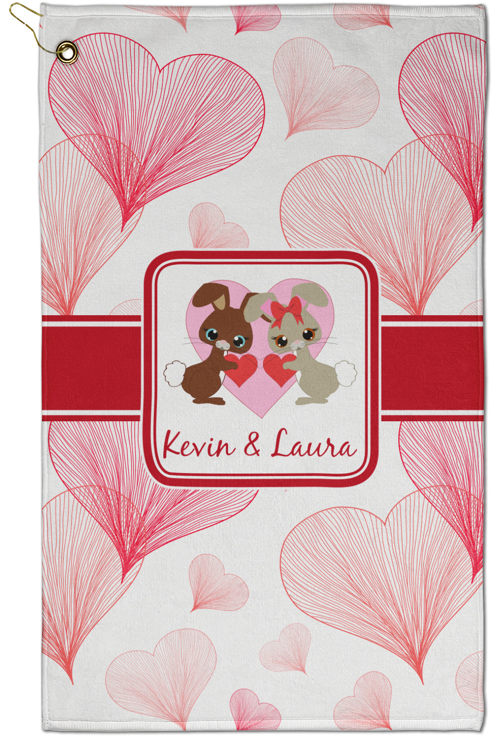 These golf towels are come in 2 sizes: Small: 11"x 18" and Large: 15" x 25" in dimension.