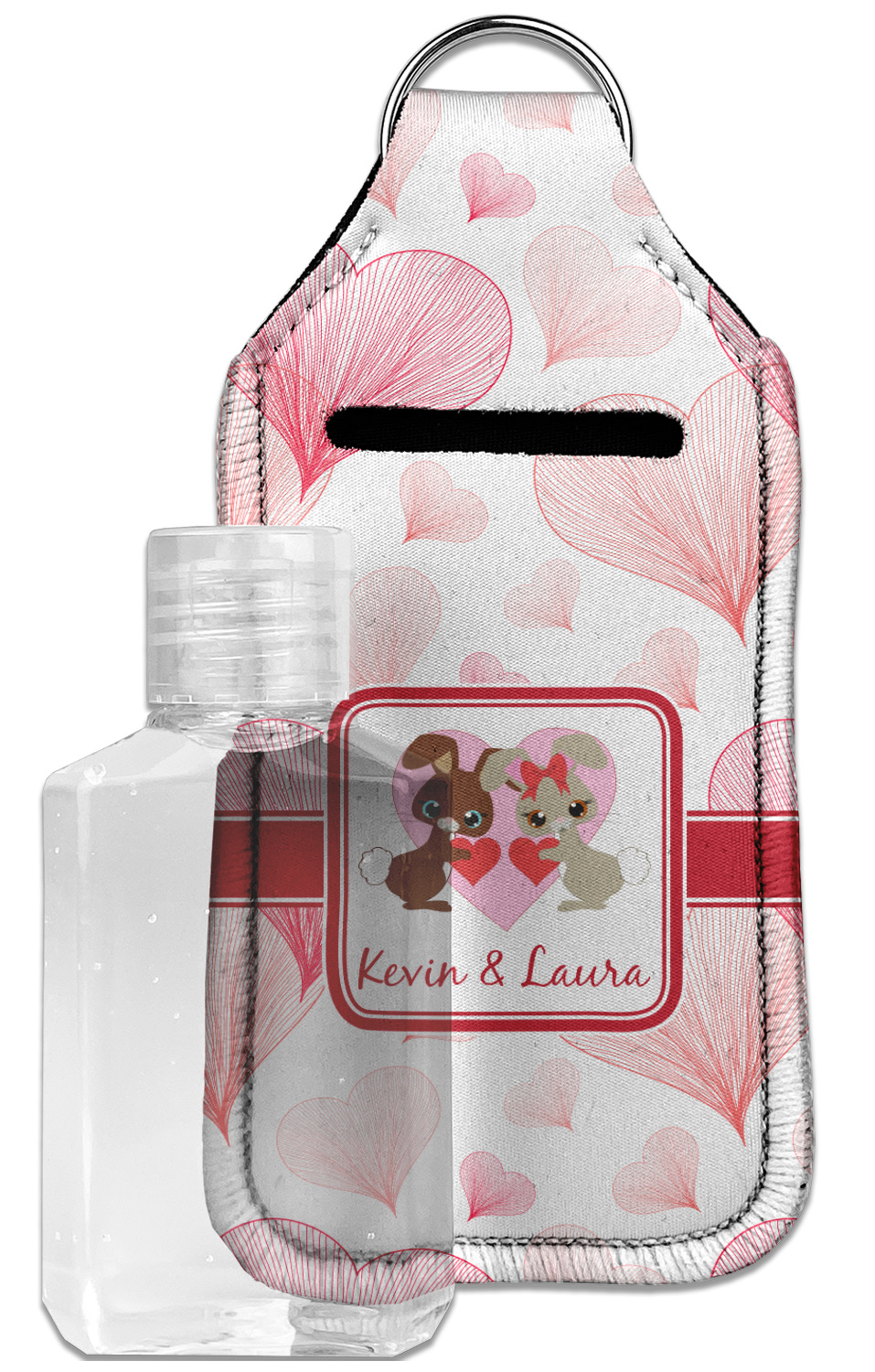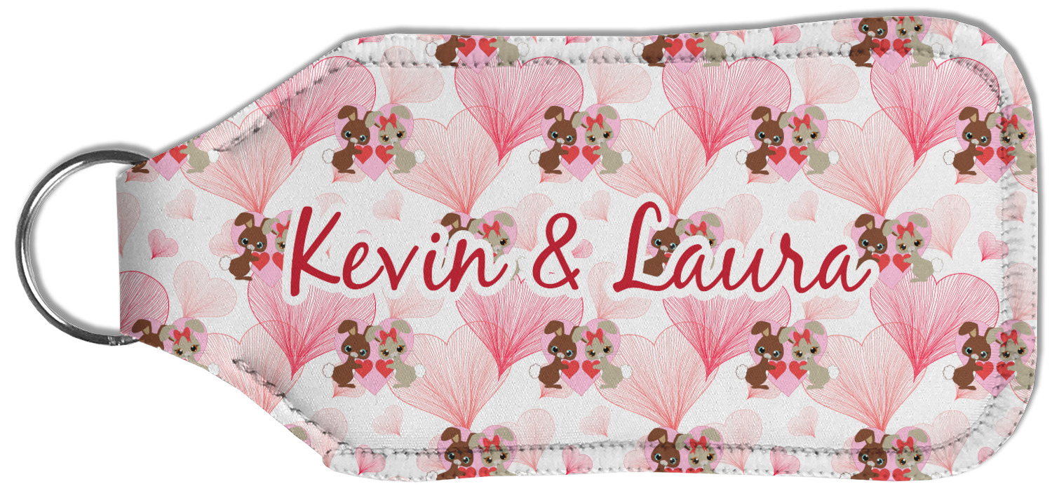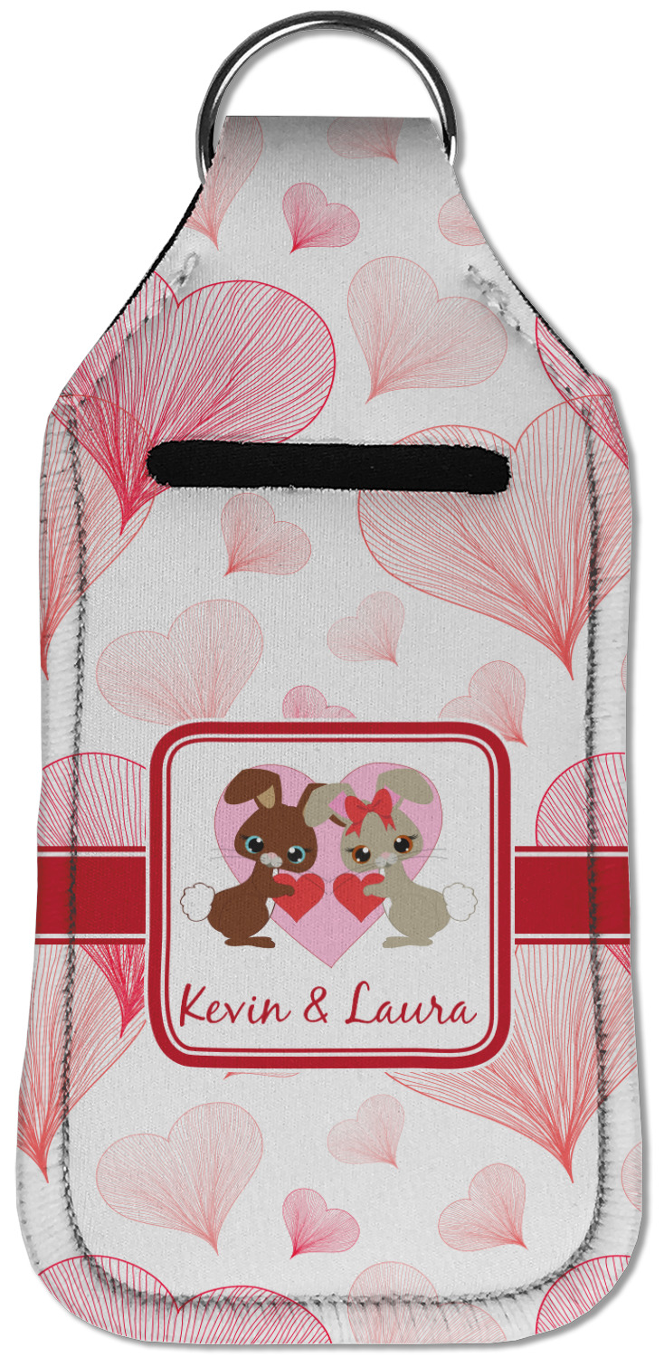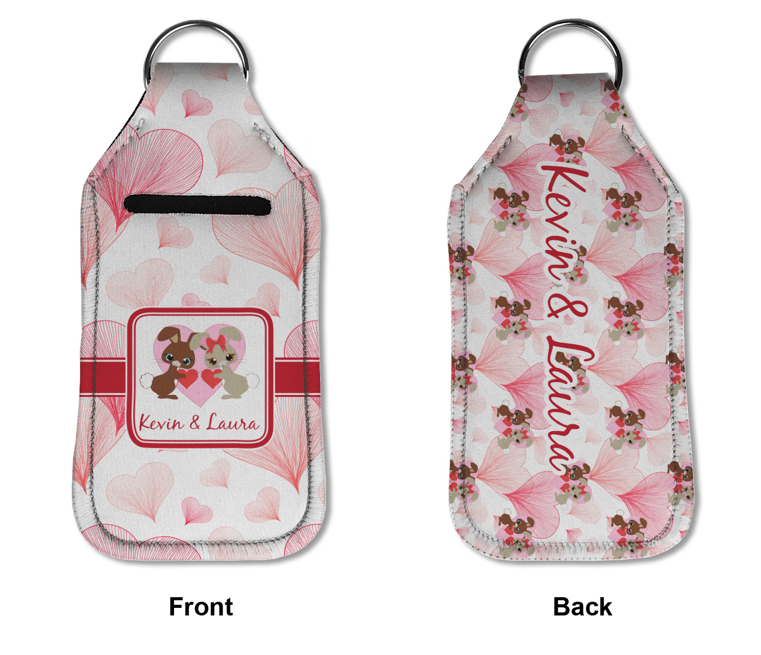 Each hand sanitizer holder comes with its own empty travel-sized, refillable hand sanitizer sure to fit snug in your customized sanitizer case! Our hand sanitizer cases are a durable, yet soft neoprene material sure to last any daily activities or travel agenda. Customize and personalize a hand sanitizer bottle holder with one of our two sizes - small (4.25" x 2.25") or large (5.5" x 2.5"). Each travel sanitizer holder comes with a keyring for attachment on bags, keys, or more!