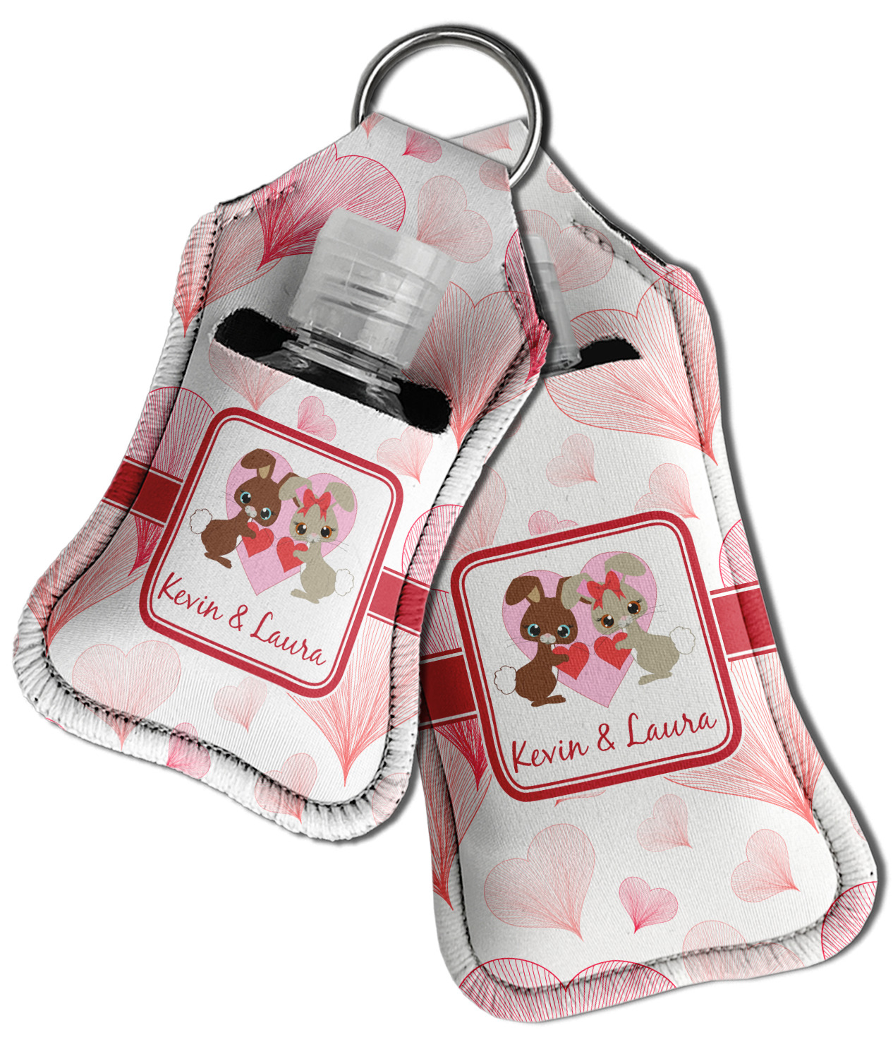 Each hand sanitizer holder comes with its own empty travel-sized, refillable hand sanitizer sure to fit snug in your customized sanitizer case! Our hand sanitizer cases are a durable, yet soft neoprene material sure to last any daily activities or travel agenda. Customize and personalize a hand sanitizer bottle holder with one of our two sizes - small (4.25" x 2.25") or large (5.5" x 2.5"). Each travel sanitizer holder comes with a keyring for attachment on bags, keys, or more!