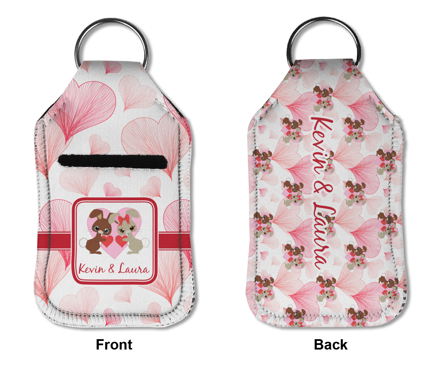 Each hand sanitizer holder comes with its own empty travel-sized, refillable hand sanitizer sure to fit snug in your customized sanitizer case! Our hand sanitizer cases are a durable, yet soft neoprene material sure to last any daily activities or travel agenda. Customize and personalize a hand sanitizer bottle holder with one of our two sizes - small (4.25" x 2.25") or large (5.5" x 2.5"). Each travel sanitizer holder comes with a keyring for attachment on bags, keys, or more!