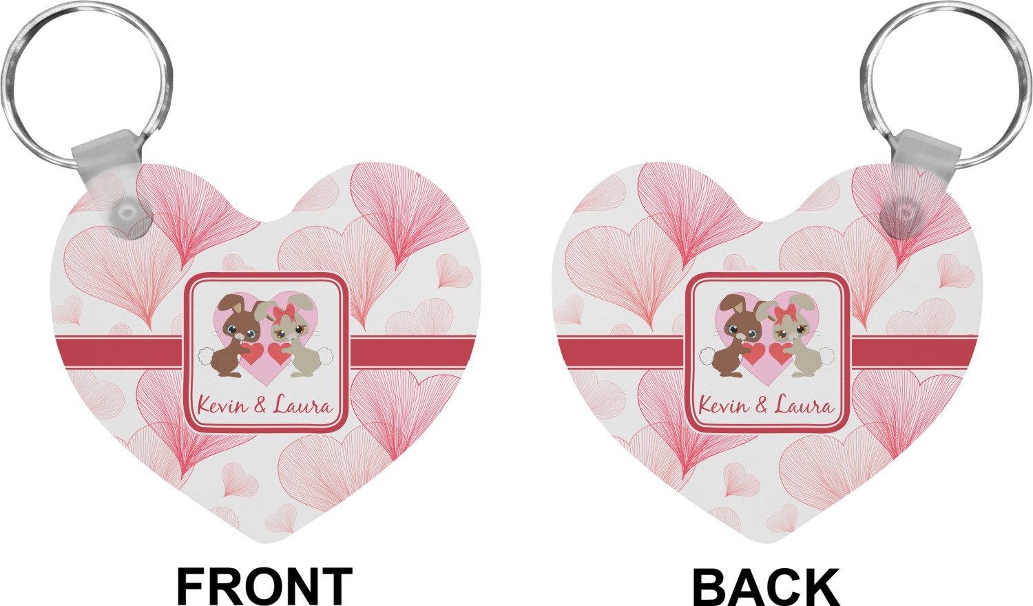 Our personalized keychains attach to the included metal, split key ring with a plastic, removable snap. Since a metal ring is included with your purchase, you have the liberty to keep your keys together on the ring, with or without your unique keychain. We offer this keychain in three different shapes: circle, heart, or diamond. We print your personalized design(s) on both sides of the key chain, and the surface has a glossy, reflective finish that only emphasizes your design. Each keychain is approximately 2.25 by 2.25 inches.