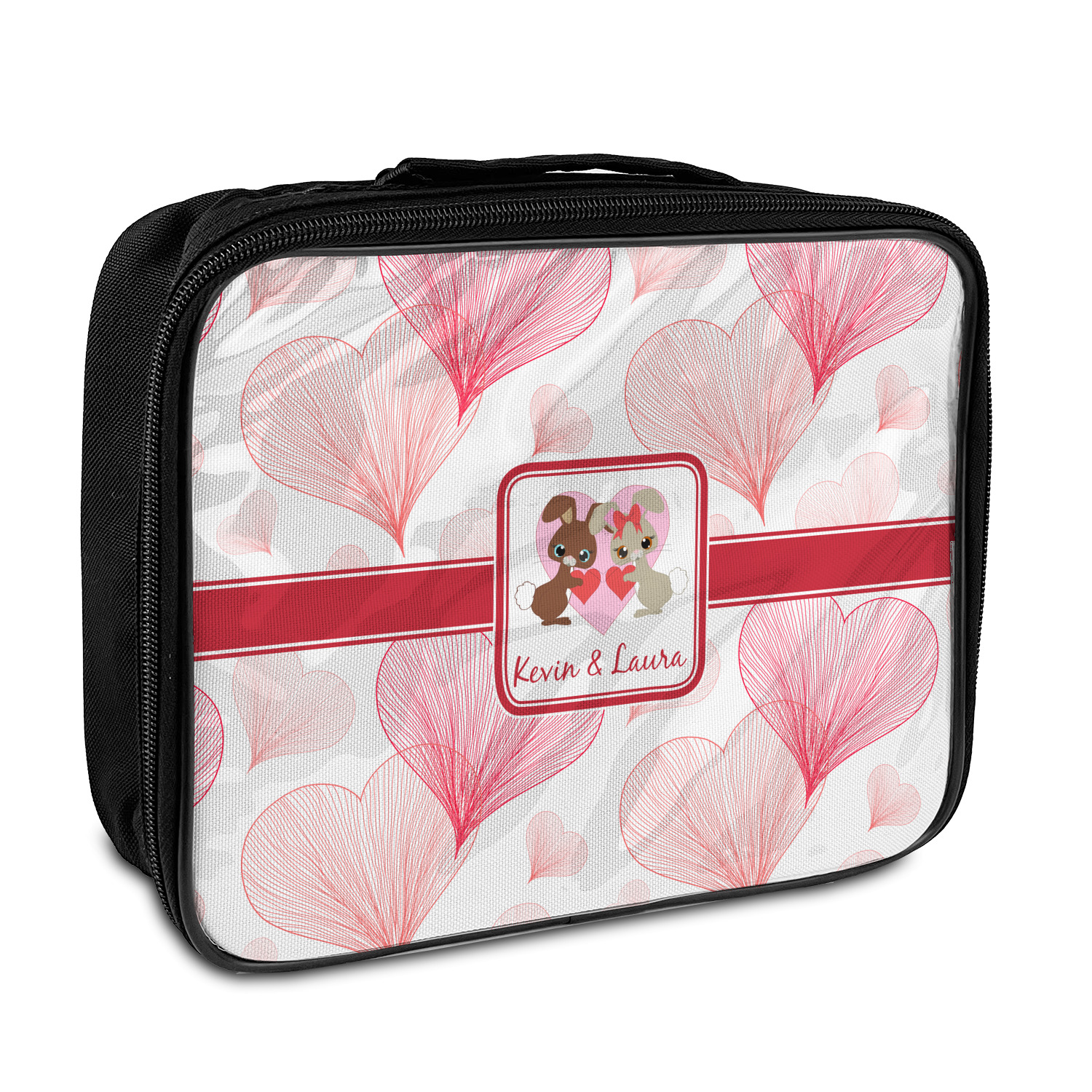 The exterior these personalized lunch bags are fabricated from a thick, durable nylon, while the inside features an effective thermal insulation. A black zipper lines all edges of the lunch bag. The front panel has a clear vinyl protective covering over the customized panel to ensure it stays clean and nice looking for a long time.