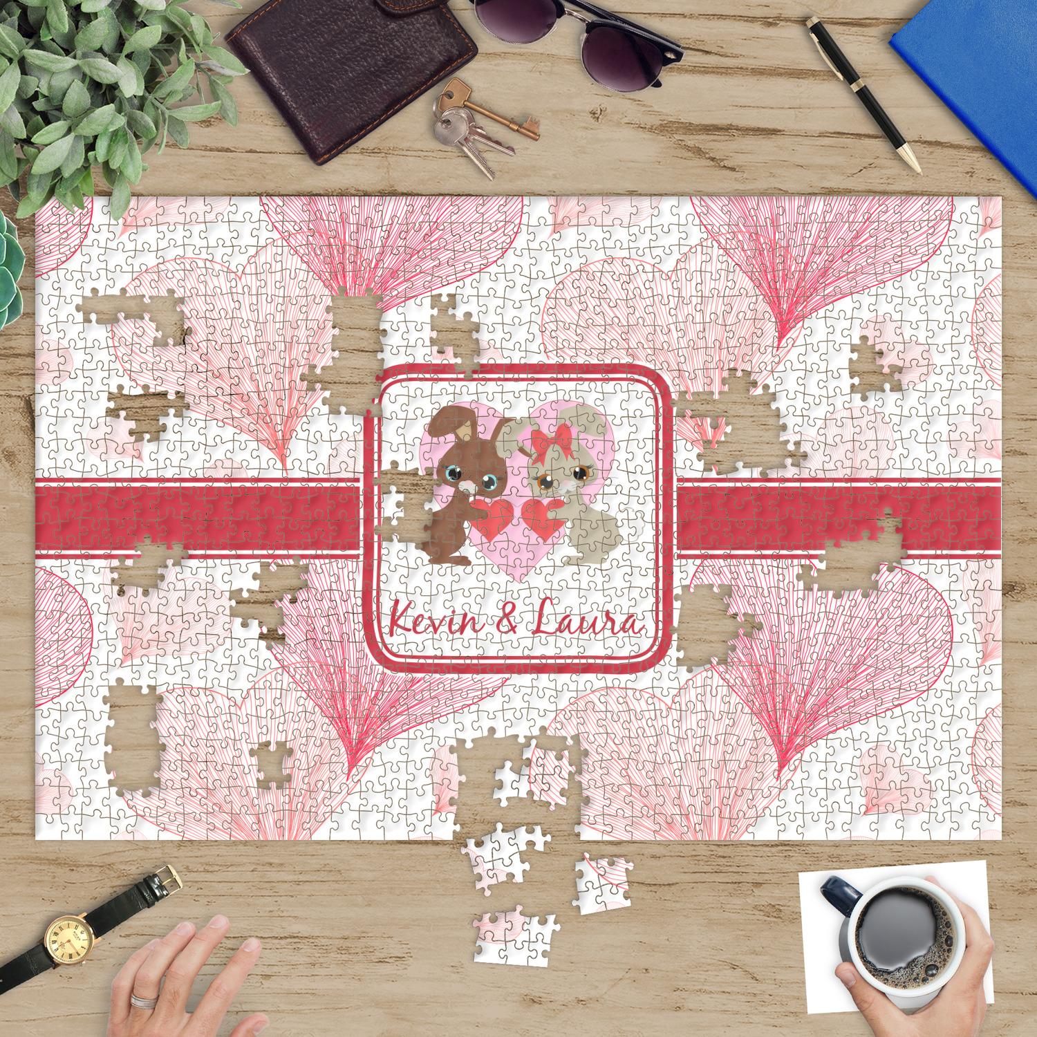 At YouCustomizeIt.com, you get to decide what you want on your puzzle. A scenic picture, a family photo, framed photo, photo with text, artwork, logo, patterns etc. You decide what you want.