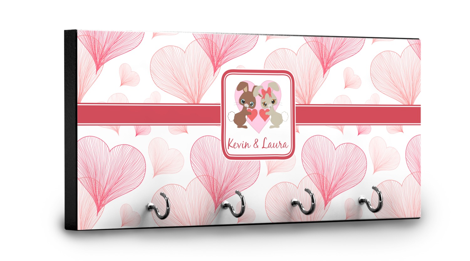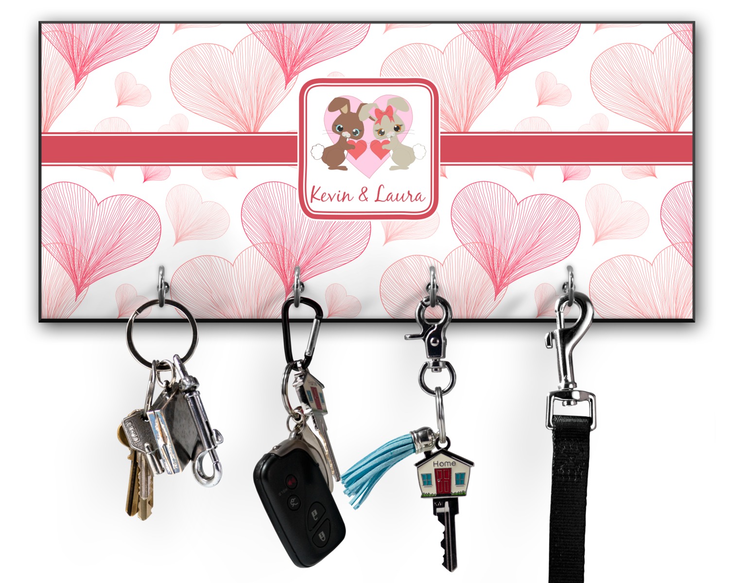 This 11" x 5" key hanger is made of sturdy wood and has four metal hooks lining the bottom. This is the perfect size for a family with several drivers. Not only can you hang keys on it though, but pet leashes and other small items. The board is black on the sides and back and is printed with the design of your choice on the front.