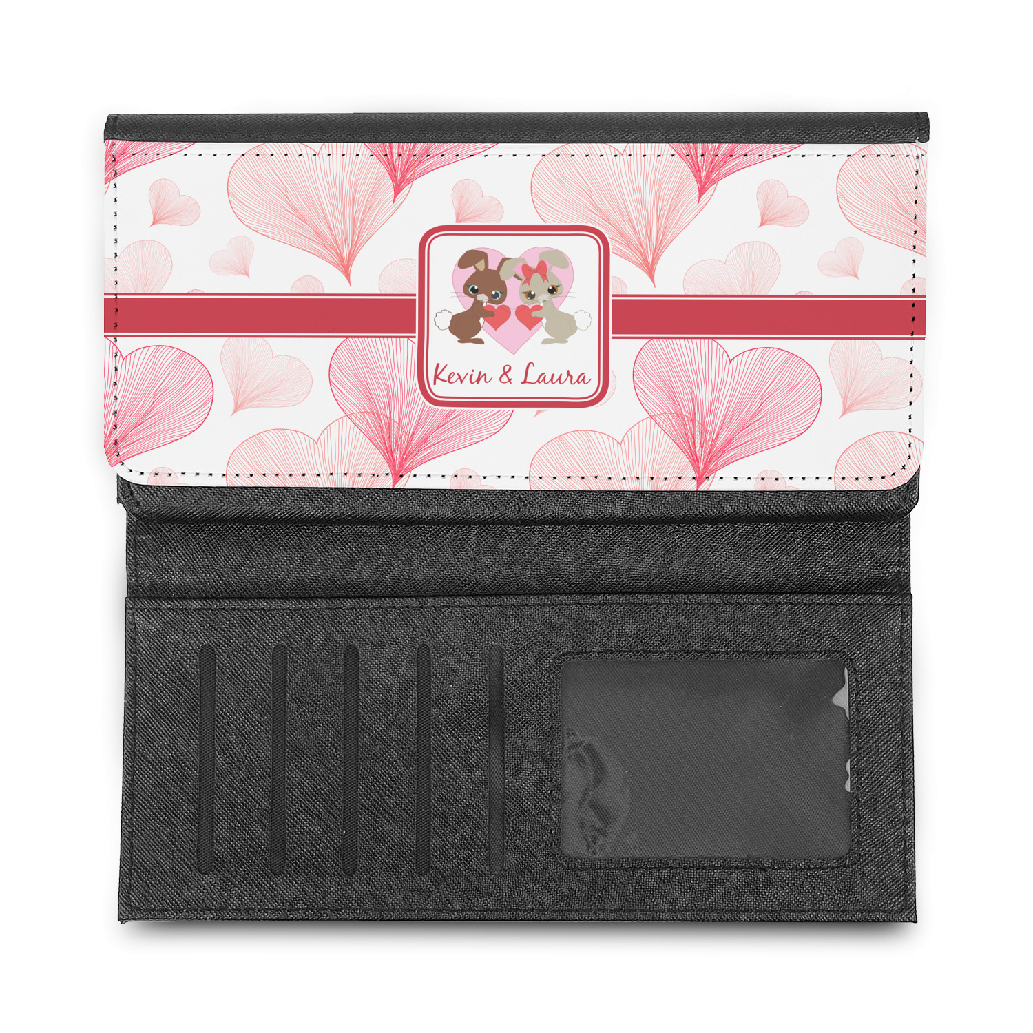 These beautiful wallets are a trifold design. The wallet is made of textured leatherette. The front section has a secure magnetic snap. The front flap is personalized with the artwork of your choice to make this wallet uniquely yours.