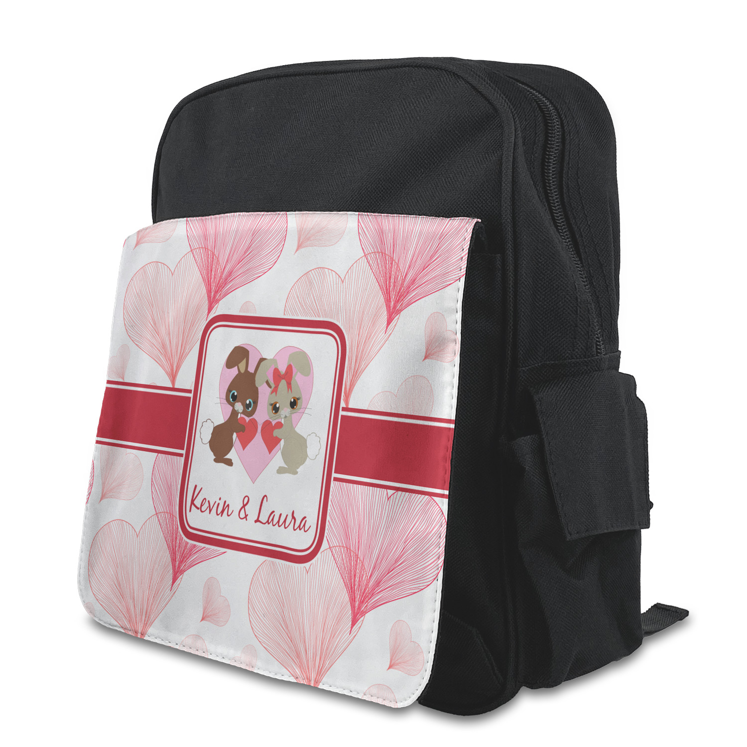 The backpack is a small size perfect for toddlers up to Kindergarten age. The zipper main pouch can hold most of their items and they have one side pocket with a flap to close it and the other side has a mesh pocket perfect for a water bottle. The outside has a customizable flap with a smaller pouch to hold more items. The straps are adjustable to fit your toddlers shoulders and they have a loop on top for hanging for storage.