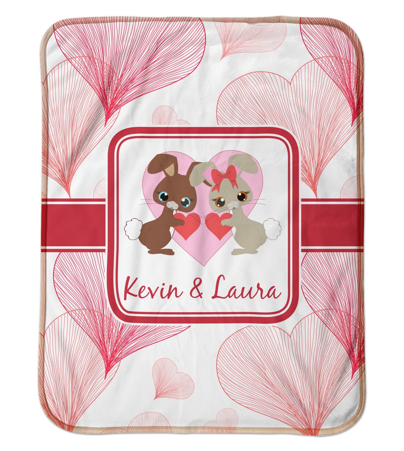 These toddler blankets are made of two different materials; the front side is made of a velvety, minky-like material that displays your customization and is perfect for a baby's delicate skin. The underside is crafted from a fluffy, sherpa fleece, and bears a classy, tan color. The dual texture gives your baby added comfort, as both sides are incredibly soft and plush. The corners of this blanket are rounded, and the ribbing of the blanket is a tan color, which complements the sandy color of the sherpa fleece. At approximately 30 by 40 inches, this custom baby blanket is the perfect size for babies and toddlers.