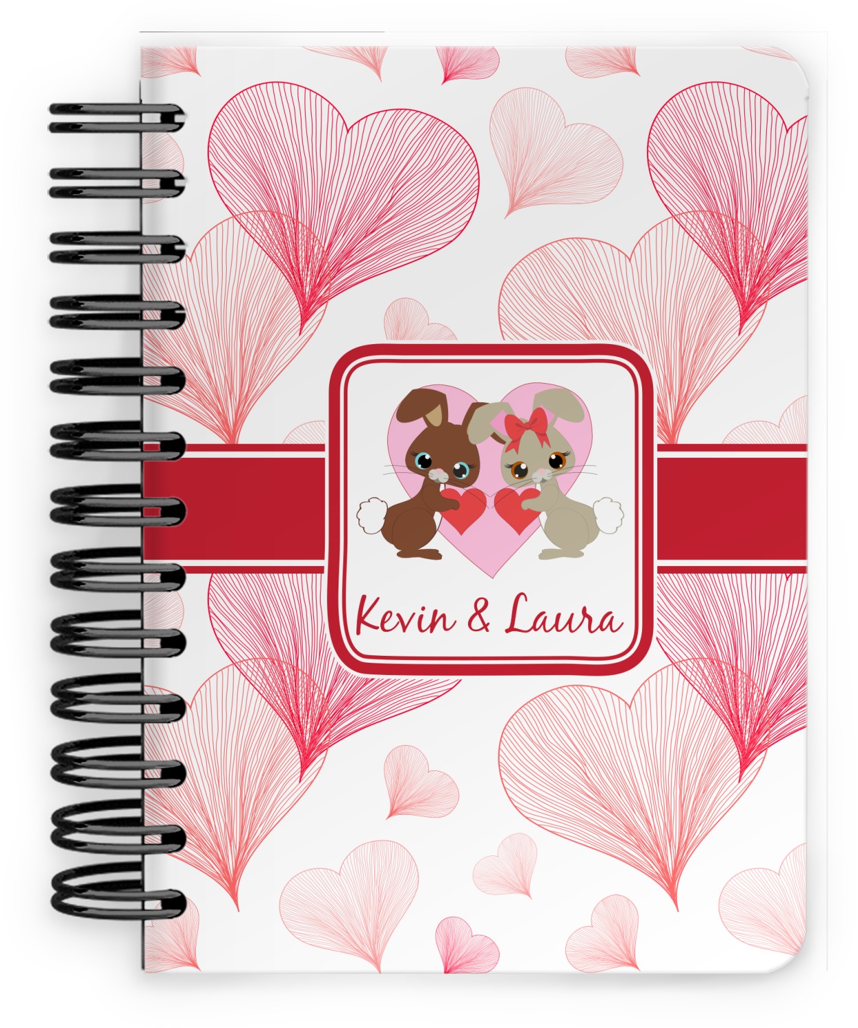 This spiral notebook includes 75 sheets of thick, ruled paper. The front and back of this custom notebook is made of a robust, laminate, plastic covering. We print your personalization on these two panels, underneath a glossy finish, which emphasizes the colors of your design. The two panels and the sheets of paper are held together by a sturdy, black coil. The paper within your bound notebook is perforated for easy, clean tearing.