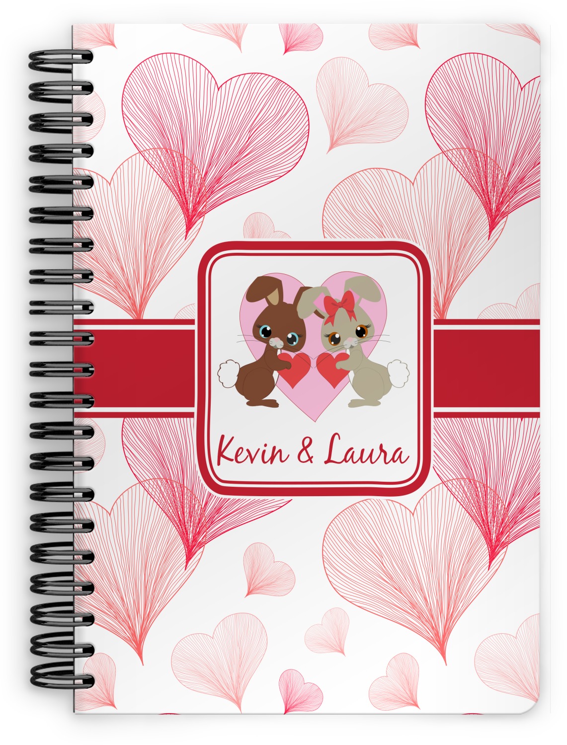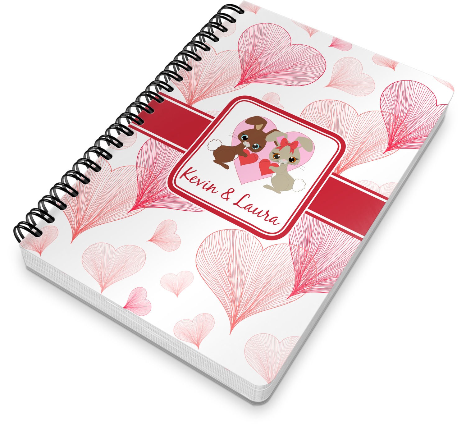 This spiral notebook includes 75 sheets of thick, ruled paper. The front and back of this custom notebook is made of a robust, laminate, plastic covering. We print your personalization on these two panels, underneath a glossy finish, which emphasizes the colors of your design. The two panels and the sheets of paper are held together by a sturdy, black coil. The paper within your bound notebook is perforated for easy, clean tearing.