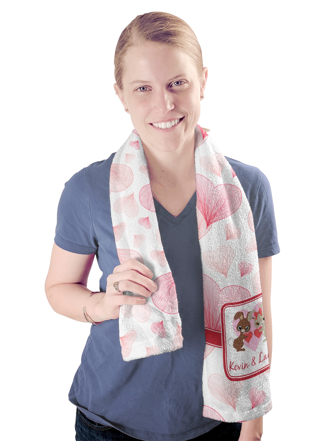 These towels are 44" x 12", which are the perfect size for hanging around your neck on the treadmill or wiping your brow after a hard workout. They are full-print towels with your very own design printed right on the front! They are perfect for soaking up moisture and are quite soft against your skin.