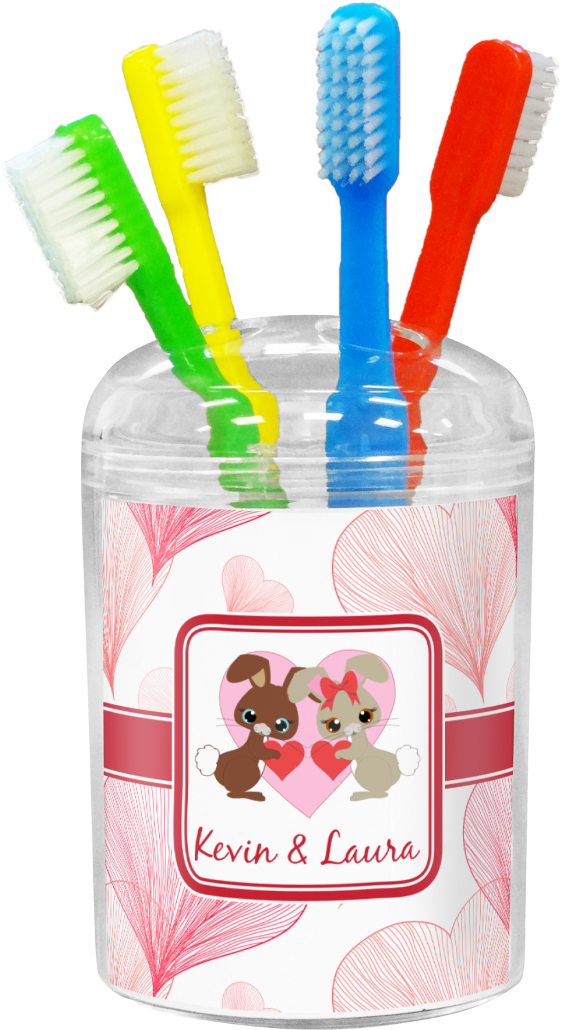 These bathroom toothbrush holders are built from acrylic, making them durable enough to withstand daily use. The stand itself is made of three different pieces: an inner cup, a base, and the lid featuring the four holes. Each toothbrush stand has a twist-off lid for easy cleaning and also features 4 holes to accommodate 4 toothbrushes. While designed for toothbrushes, these holders are multifunctional, and can be used for makeup brushes, paintbrushes, and more! Your customization is displayed on the side of this product on a fine-quality, vinyl insert.