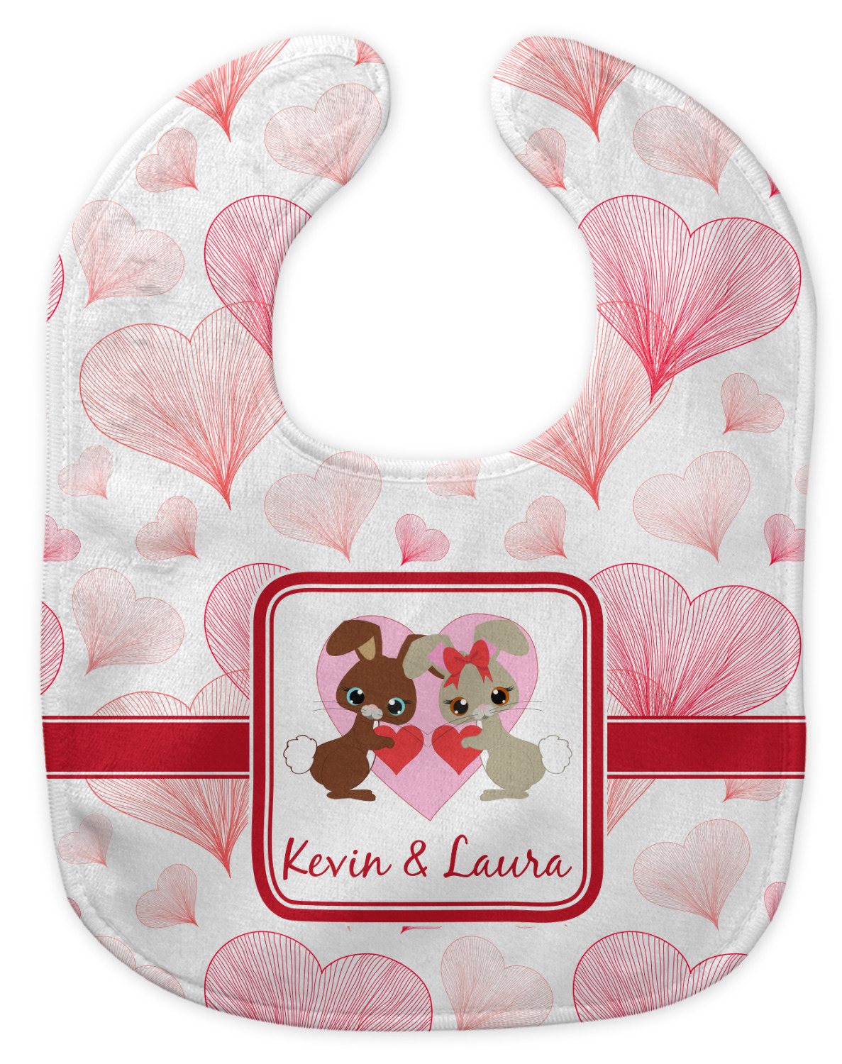 Made of soft polyester, each customizable bib hugs comfortably around the neck to catch every drip and drool. Each bib design is printed with baby-safe ink and finished with a secure stitch pattern and velcro clasp. We carry two customizable bib styles -Microfiber Velour and Jersey Knit.