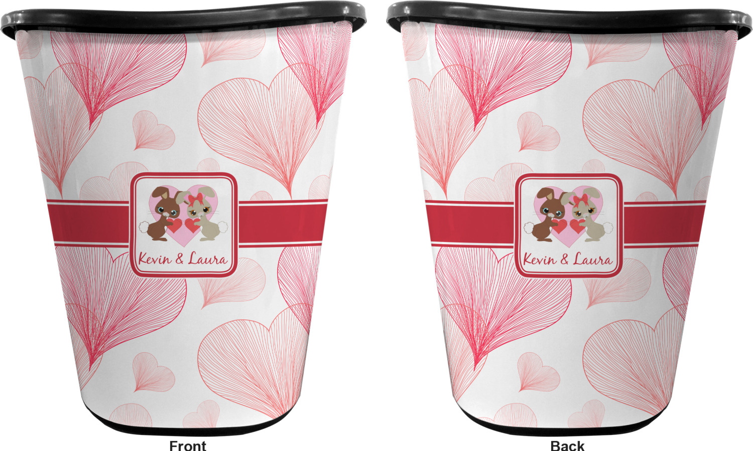 You can choose to purchase these decorative wastebaskets in either a white or a black color that will show on the base and the upper rim. Your customization is printed on a high-gloss, fine-quality vinyl adhesive, and you can choose to either have this adhesive applied to one side only or to both sides. As such, this plastic wastebasket can be single-sided or double-sided, depending on your creative vision. Your customization is printed using durable inks, making the design waterproof and resistant to fading over time.