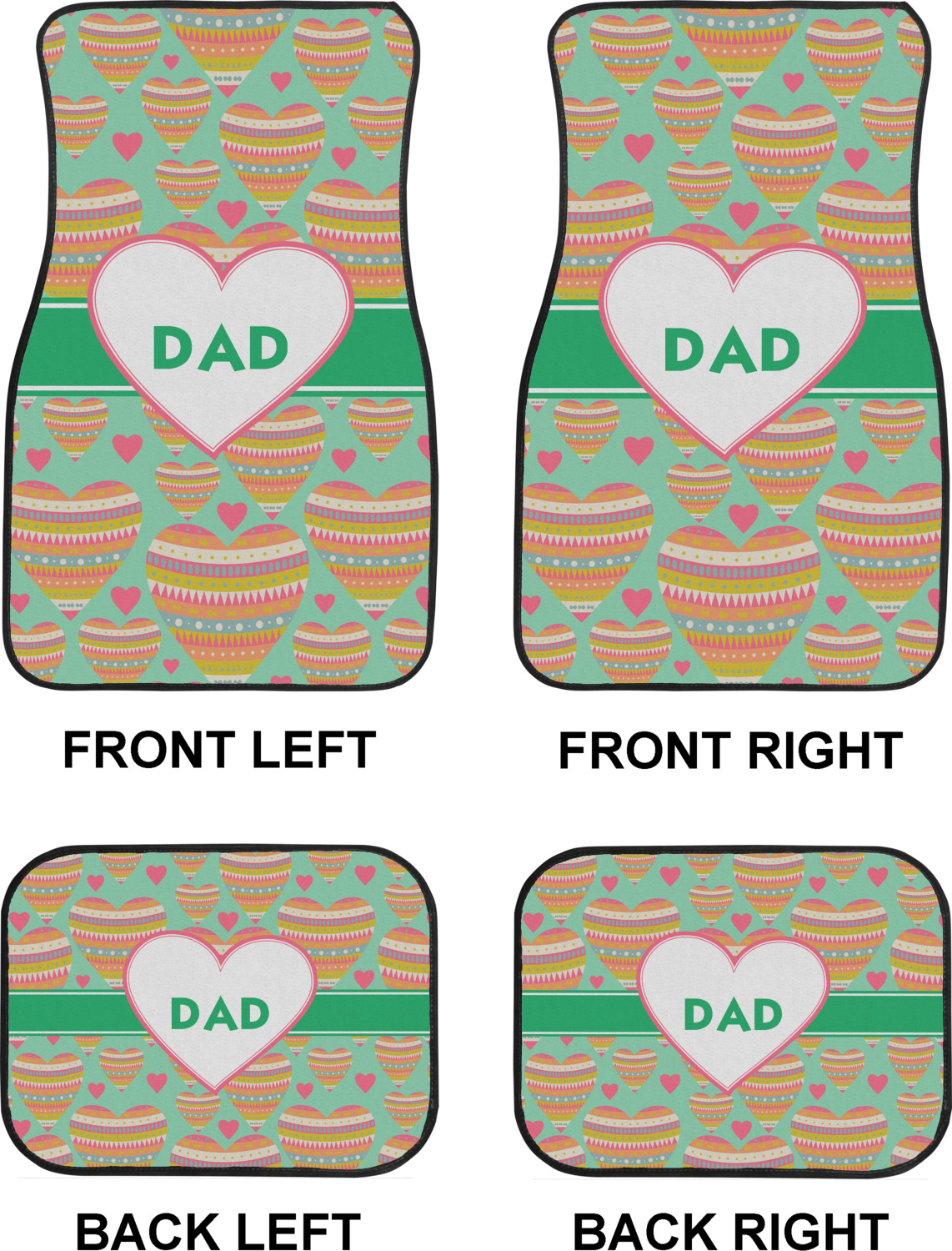 We craft our auto floor mats mats from polyester, apply a black finish to the edges, and lined at the bottom to prevent slippage. These mats protect your floors from grass, mud, and any accidental spills. We display your personalized design on the front face of each mat. The sizes of these car floor liners are standardized to provide a versatile fit for all vehicles. The front rows car mats measure at 17 by 26.5 inches, while the back rows measure at 17 by 13 inches. We sell three packages of car floor mats. You can purchase a pair of front row car mats, a pair of back row car mats, or a set of front row and back row car mats. To make an informed purchase, we recommend measuring the surface area of your car floors.