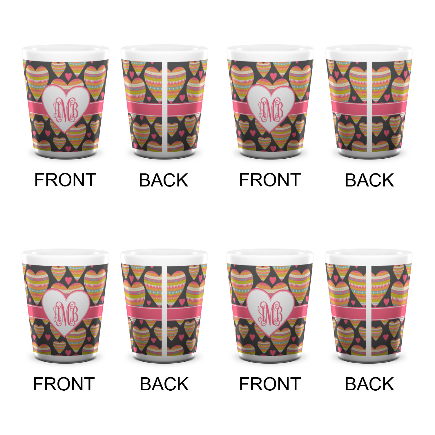 Made from ceramic these shot glasses are printed in full color with the design of your choice. These are a standard 1.5oz size and stand 2.25" tall. Available in a full white ceramic or a two-tone with a black color inside the shot glass. Buy a single or a set of 4, all of which can be designed separately to get you just what you want and need.