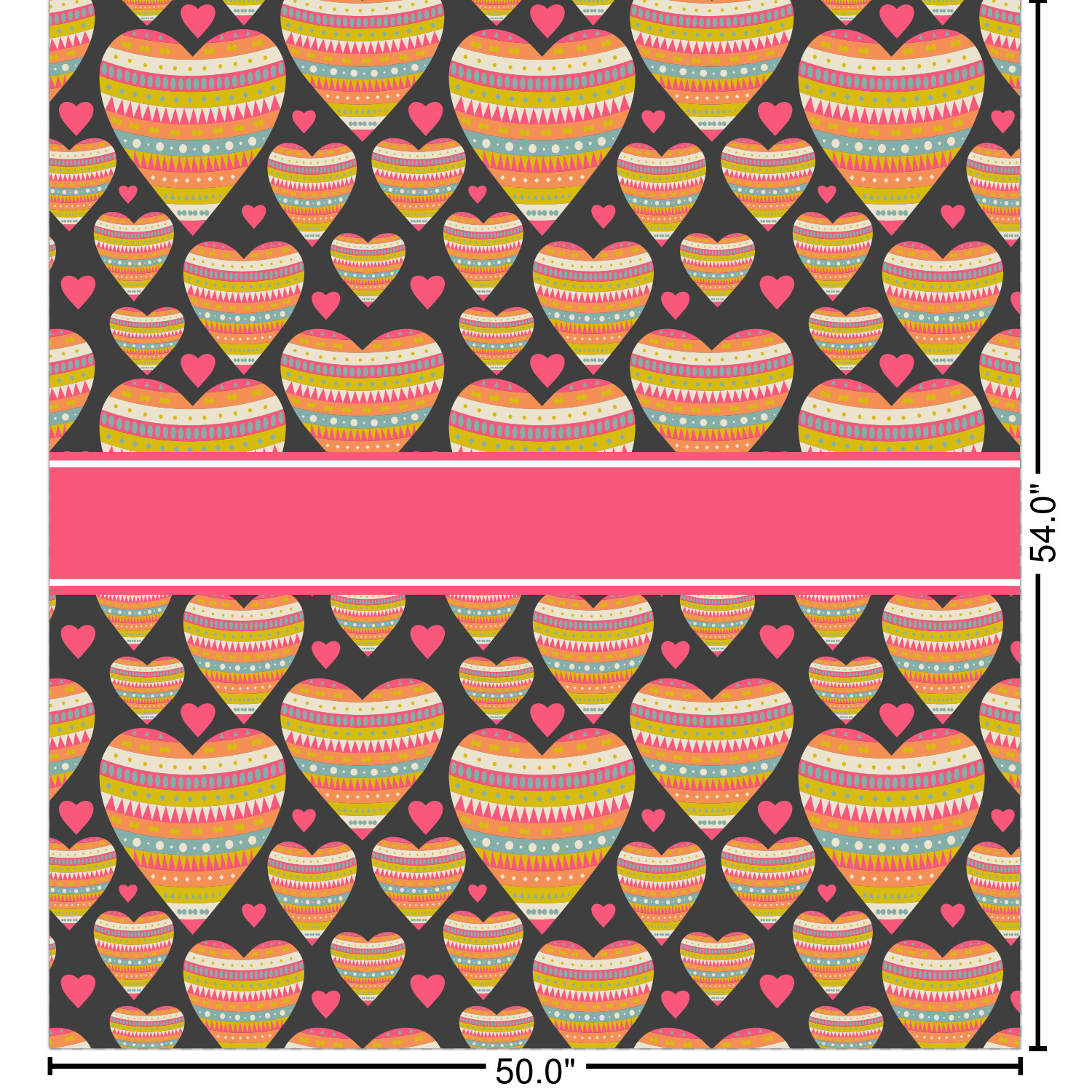 This Valentine's Day design looks sweet enough to eat. Multicolored hearts, each one filled with stripes and triangles and patterns of all kinds, are set on a crisp white background.