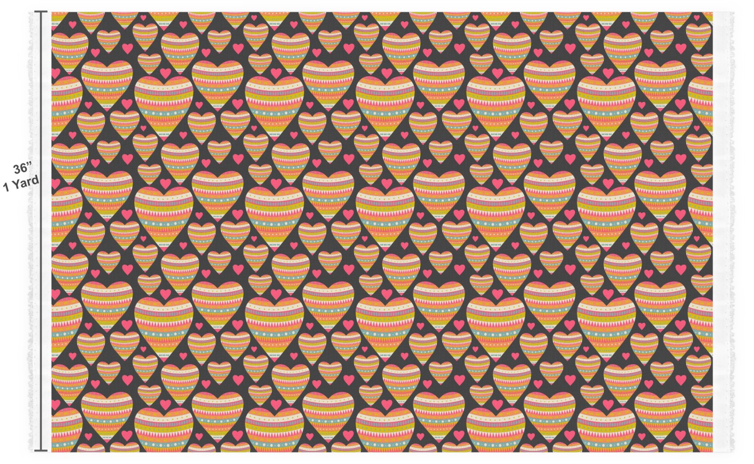 This Valentine's Day design looks sweet enough to eat. Multicolored hearts, each one filled with stripes and triangles and patterns of all kinds, are set on a crisp white background.
