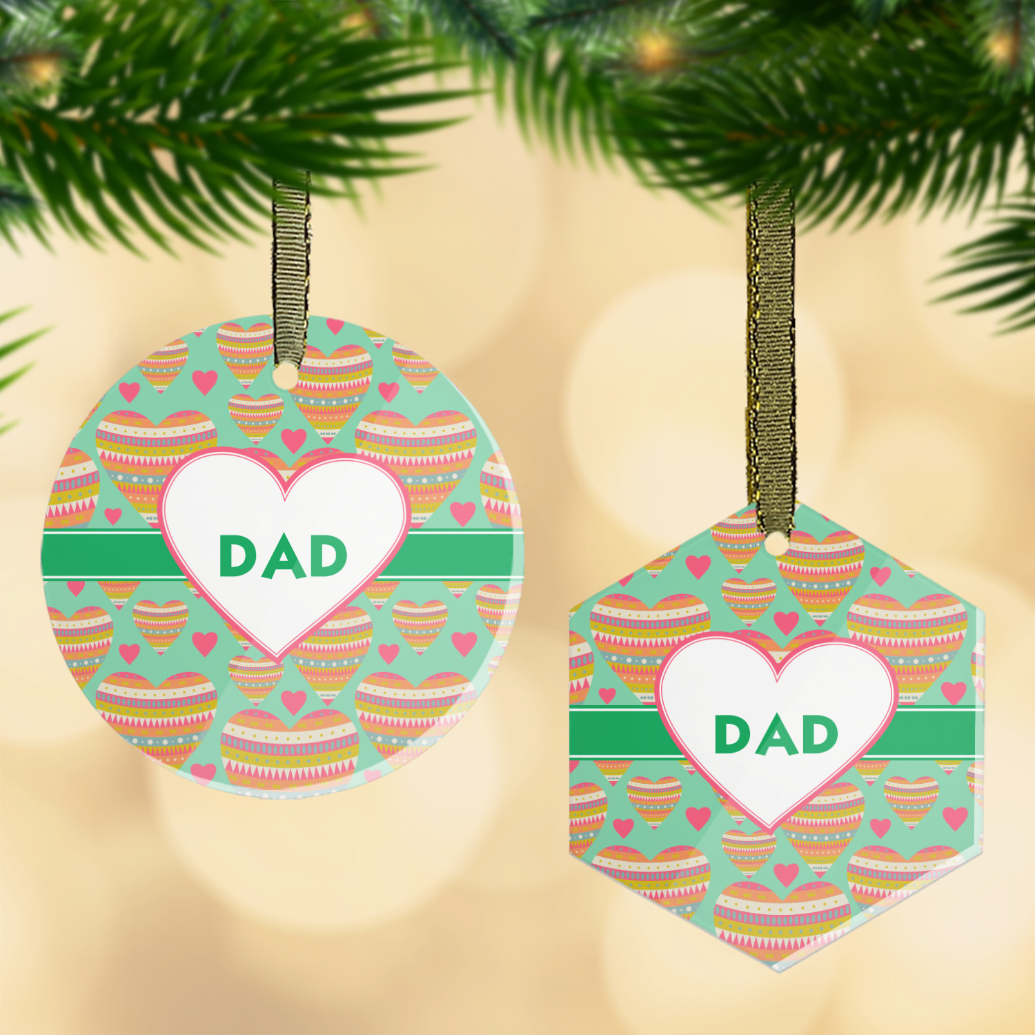 Each of our flat glass ornaments come with a gold string to hang on your Christmas tree with style! We offer two different shapes - flat, round ball or a hexagon. Both glass ornaments have a frosted coating on one side where we print your design while the other side is a clear gloss to give your personalized ornament a sheen finish. Our flat round glass ornament is approximately 3.5" x 3.5" while the flat hexagon ornaments are approximately 3.5" x 3".
