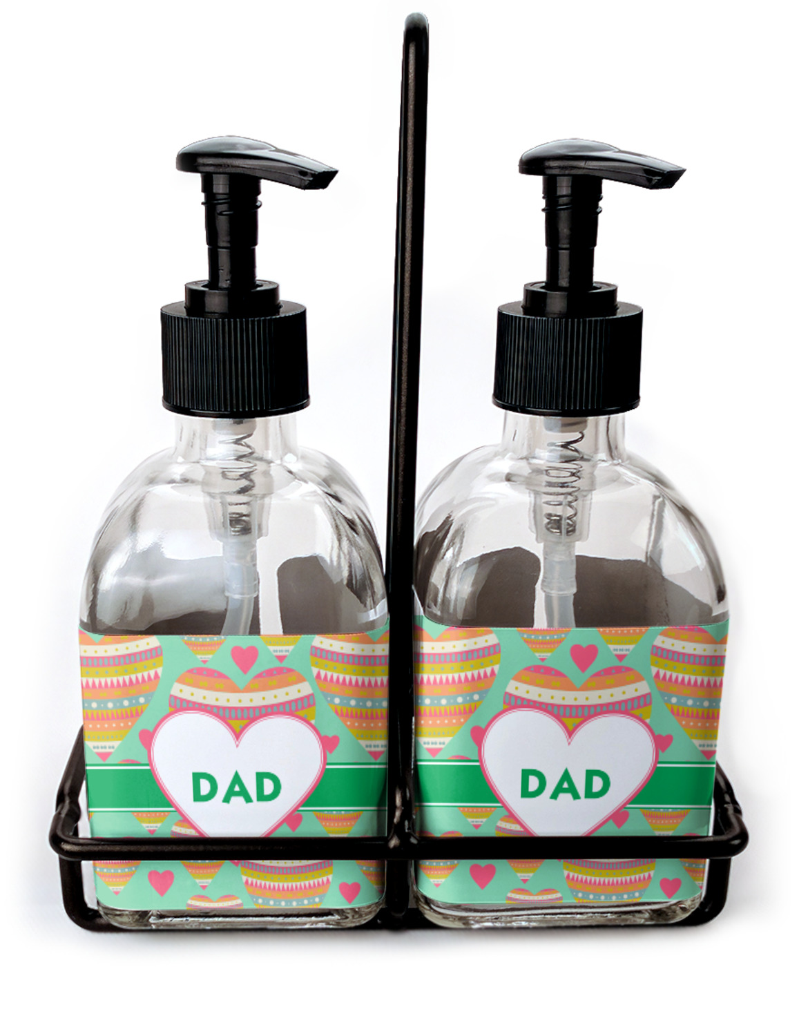 Crafted from a high-quality glass, these soap dispensers and lotion dispensers are durable and robust, while still looking elegant. They are sold with black pumps. Each soap dispenser pump measures at 6.5 by 2.25 inches. On these soap pumps, we display your customized design on a personalized vinyl adhesive on three sides. That way, you can judge how much liquid is in the bottles from the back.