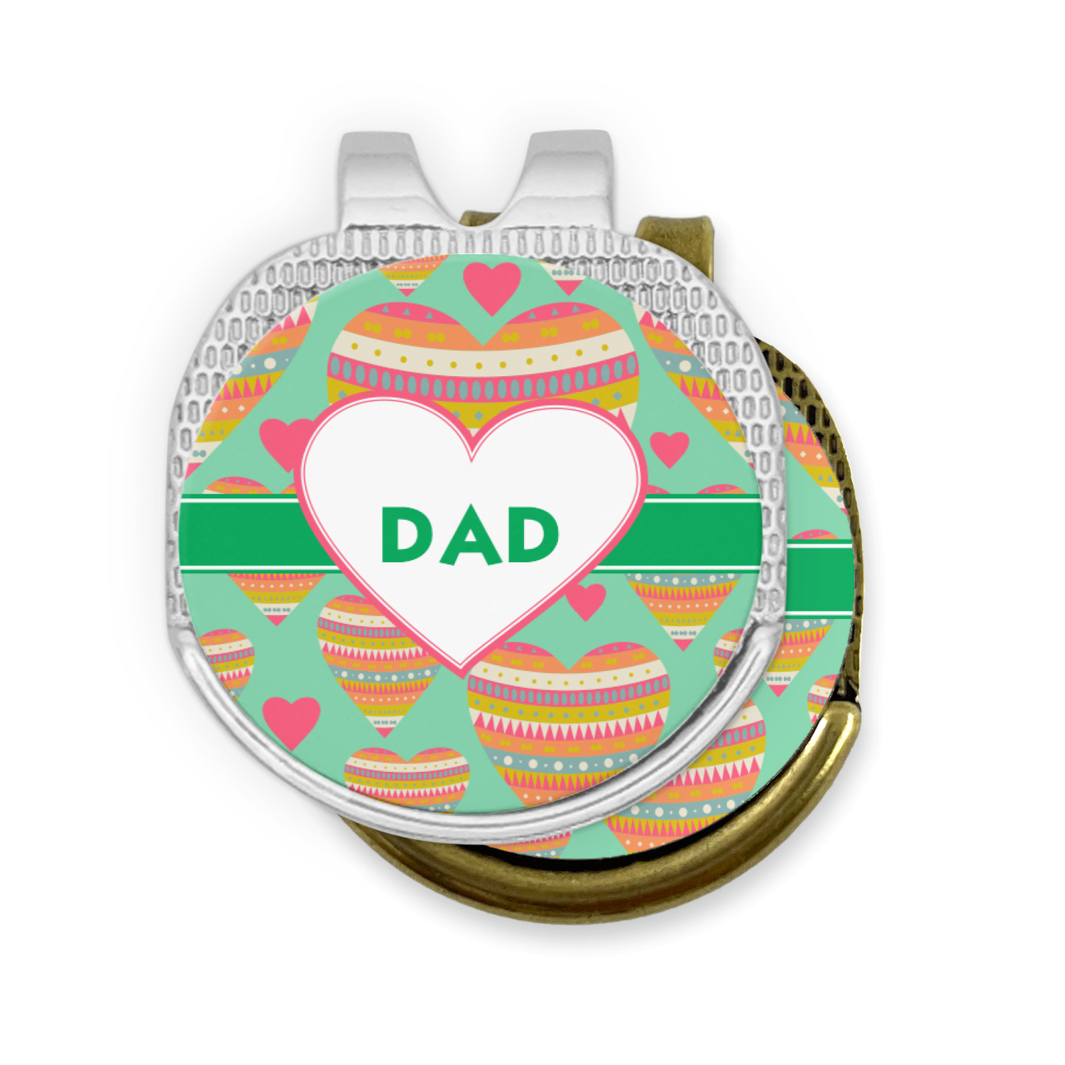 This round shaped little clip is simply 1.25" x 1.5". A clip wraps around to the back of the ball marker holder in order to be able to clip it to the bill of your hat or even your belt. The metal ball marker attaches by a magnet on the clip. Available in stainless steel natural finish or gold finish, you are sure to find one to suit your style. This makes for convenient removal when you need to use it. No more digging in your bag or pockets trying to find it!