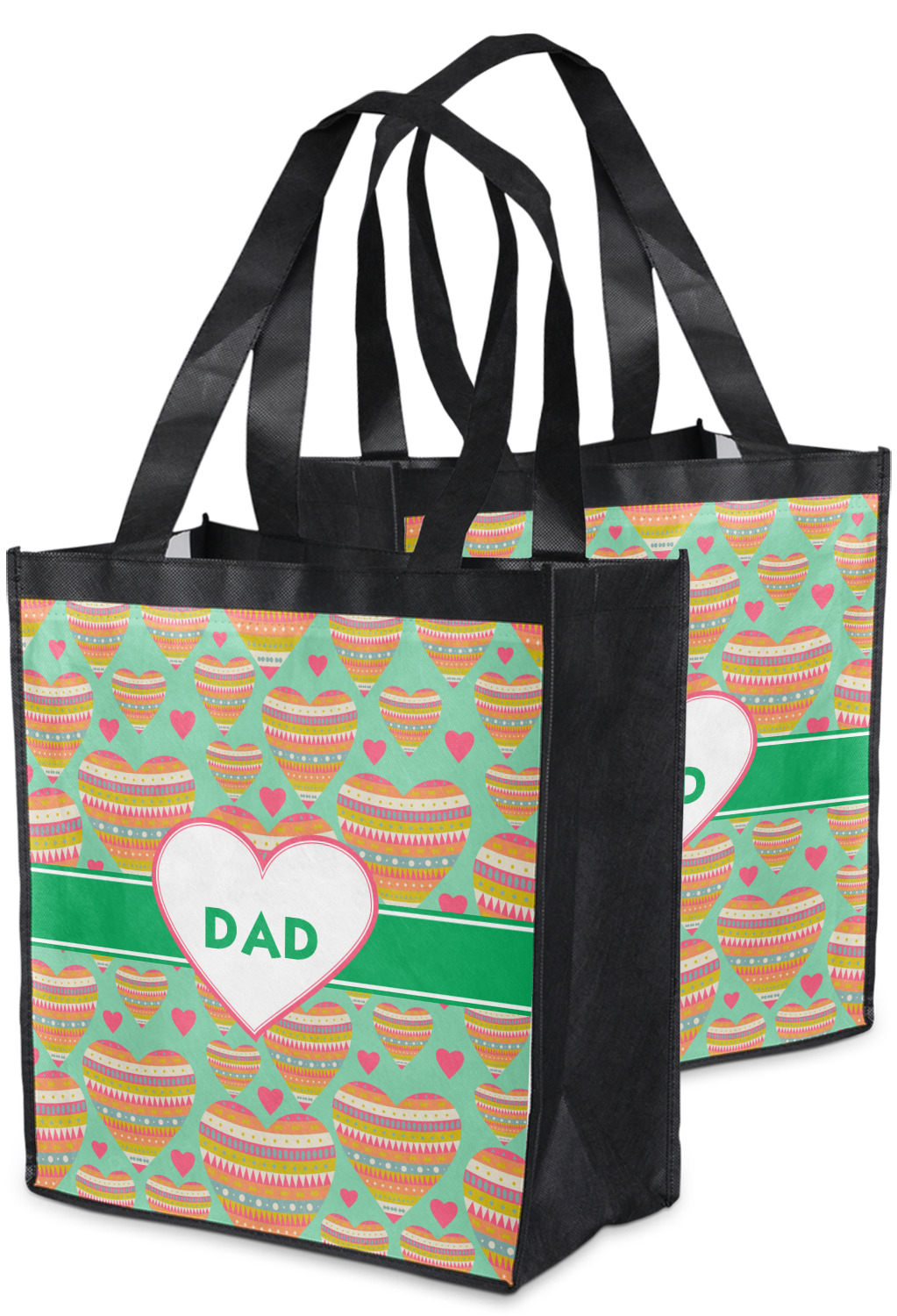 Reduce the number of plastic waste you produce weekly by switching to our reusable grocery bags! Once personalized, these grocery bags will display a favorite theme, pattern, or treasured artwork, in an eco-friendly way! Customize one, or a whole set, for your weekly grocery runs!
