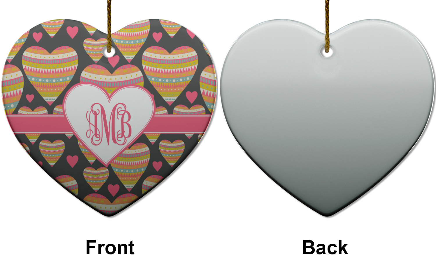Have a happy holiday and share the joy of Christmas with your loved ones by hanging up personalized ceramic ornaments! Ornaments add a touch of who you are and the things you love onto the Christmas tree! Create custom ornaments for the kids and have them hang up their own star with their name, or pay remembrance this holiday to missed loved ones with our ceramic heart ornament. Browse many of our unique designs and customize them the way you'd like! From monograms, logos, and patterns, we have it all! You can even upload a photo of your family for us to print onto the ornament! The possibilities are endless!