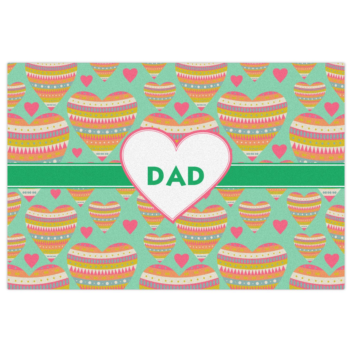 This Valentine's Day design looks sweet enough to eat. Multicolored hearts, each one filled with stripes and triangles and patterns of all kinds, are set on a crisp white background.