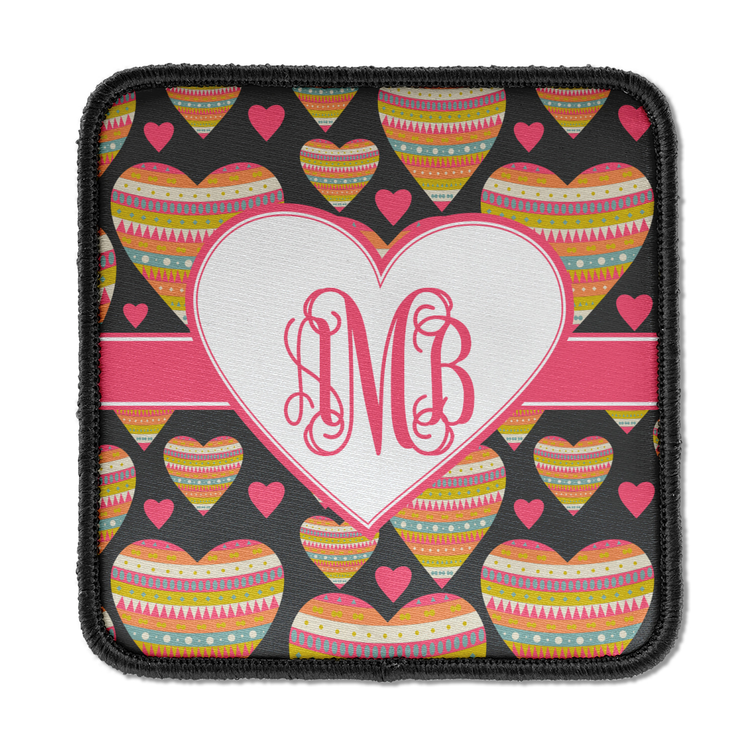 This Valentine's Day design looks sweet enough to eat. Multicolored hearts, each one filled with stripes and triangles and patterns of all kinds, are set on a crisp white background.