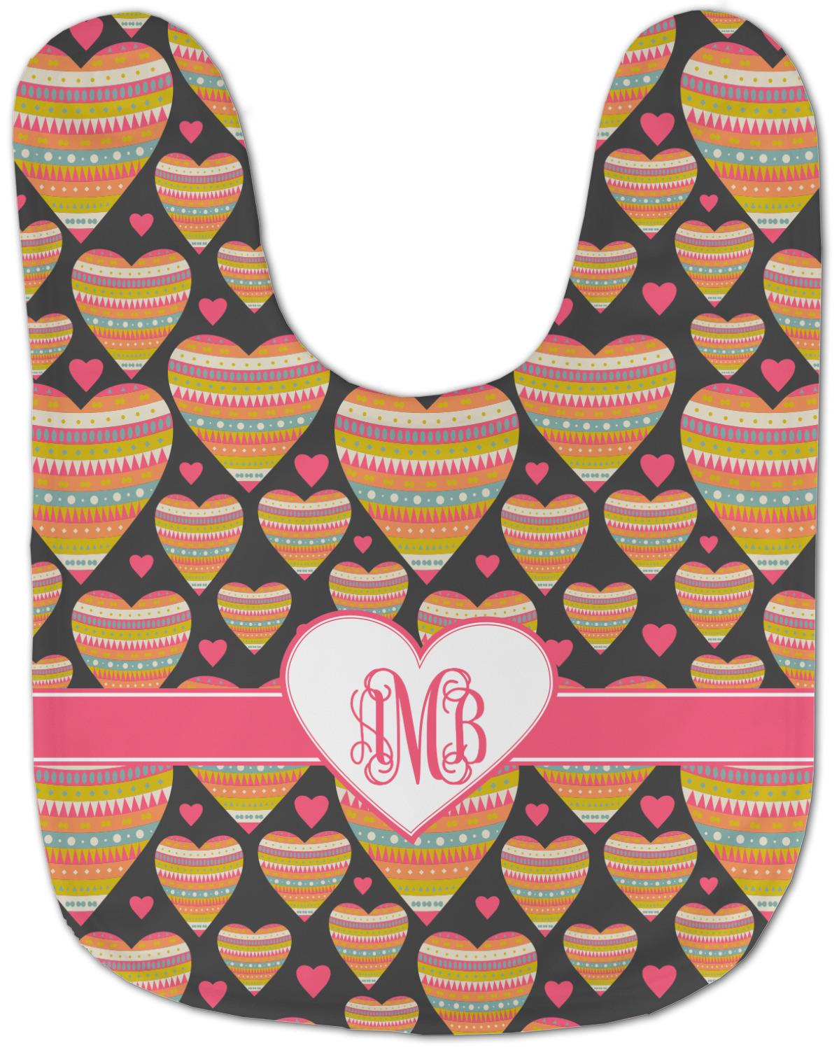 Made of soft polyester, each customizable bib hugs comfortably around the neck to catch every drip and drool. Each bib design is printed with baby-safe ink and finished with a secure stitch pattern and velcro clasp. We carry two customizable bib styles -Microfiber Velour and Jersey Knit.