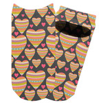 This Valentine's Day design looks sweet enough to eat. Multicolored hearts, each one filled with stripes and triangles and patterns of all kinds, are set on a crisp white background.