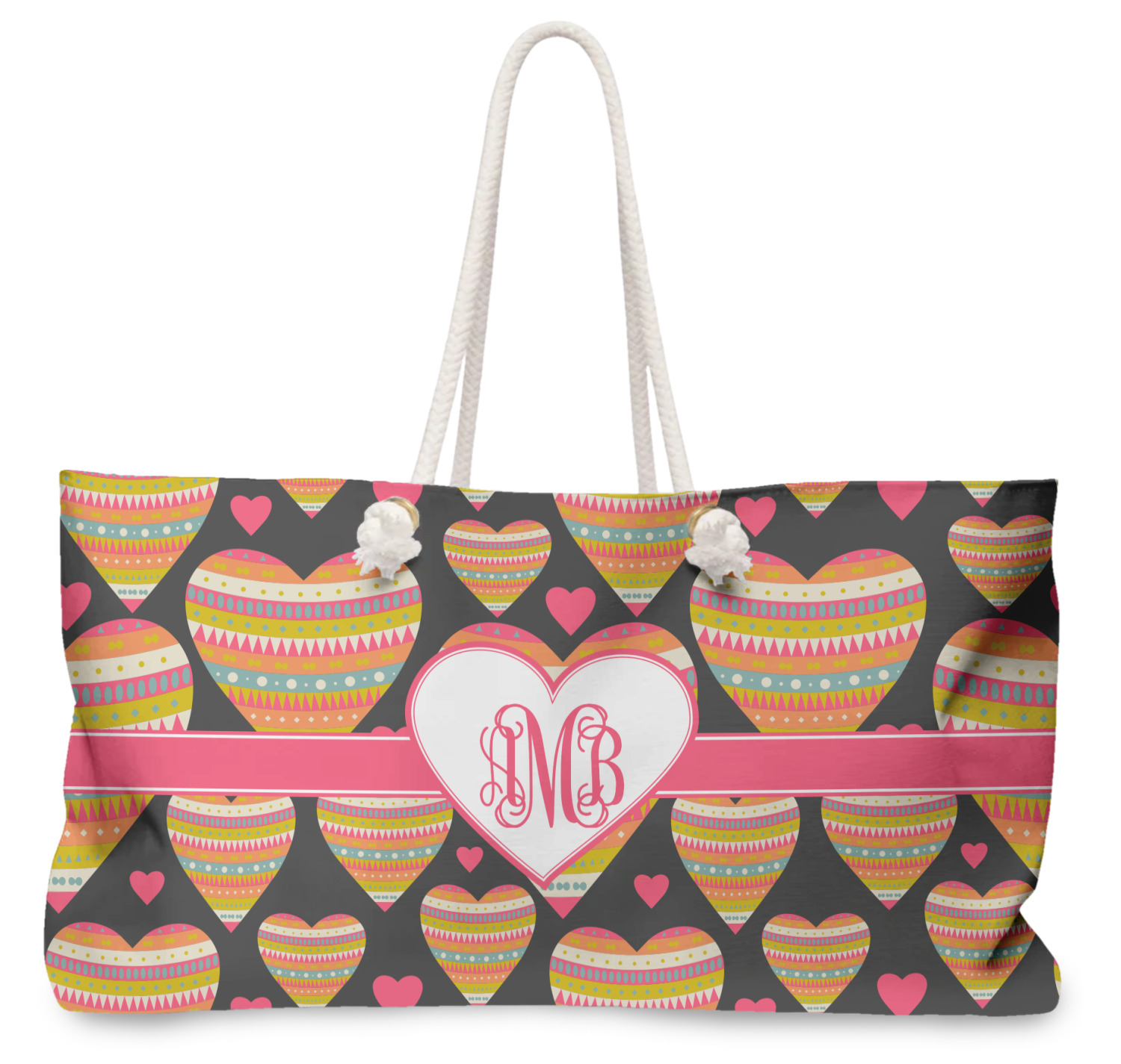 These weekender totes can be customized front and back. The totes are full all over print - so the choice of how background are endless - from beautiful floral or leaf patterns to geometrics or some classic Van Gogh artwork - the possibilities are endless. The totes can also be decorated with photos and logos.