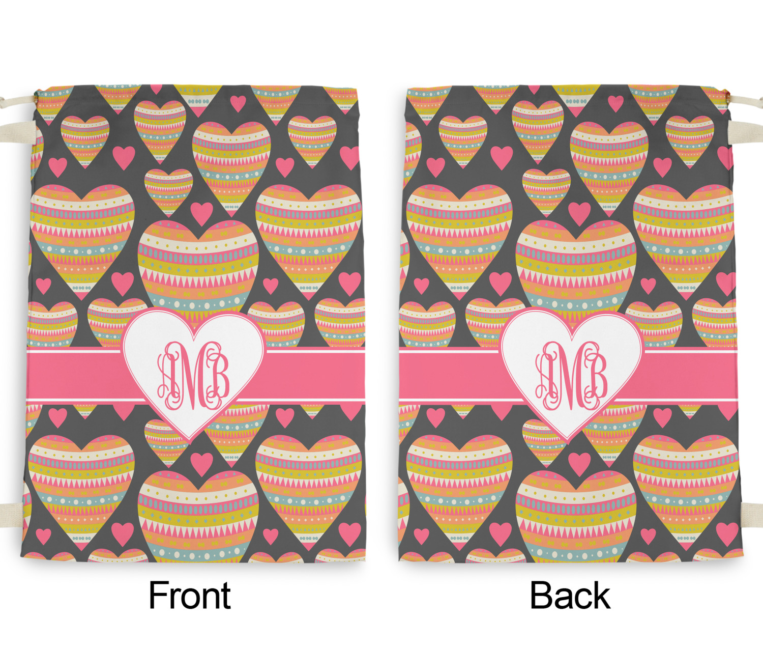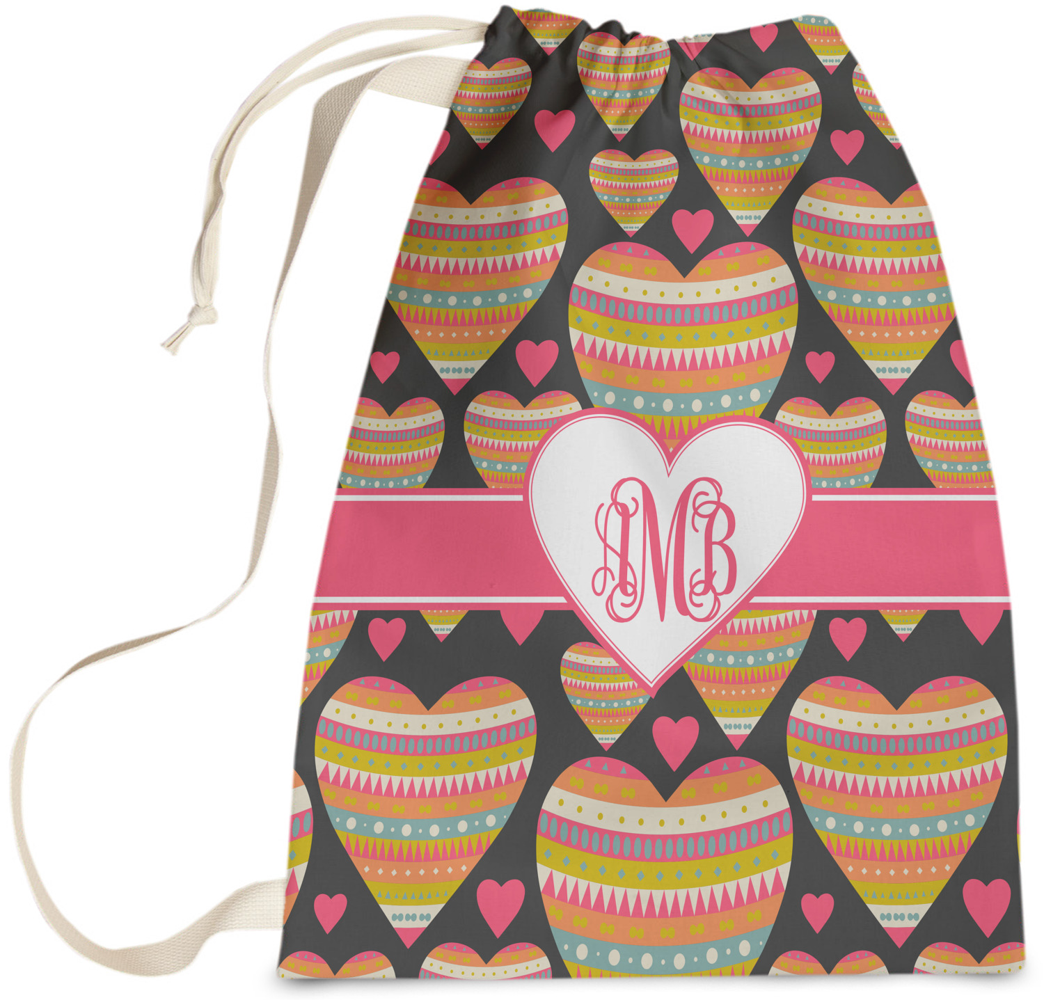Carry your laundry in style with these customized laundry bags. Available in two sizes, featuring a natural colored woven strap and a cinch cord, these bags hold a lot of clothes or anything else you want to fit in them.