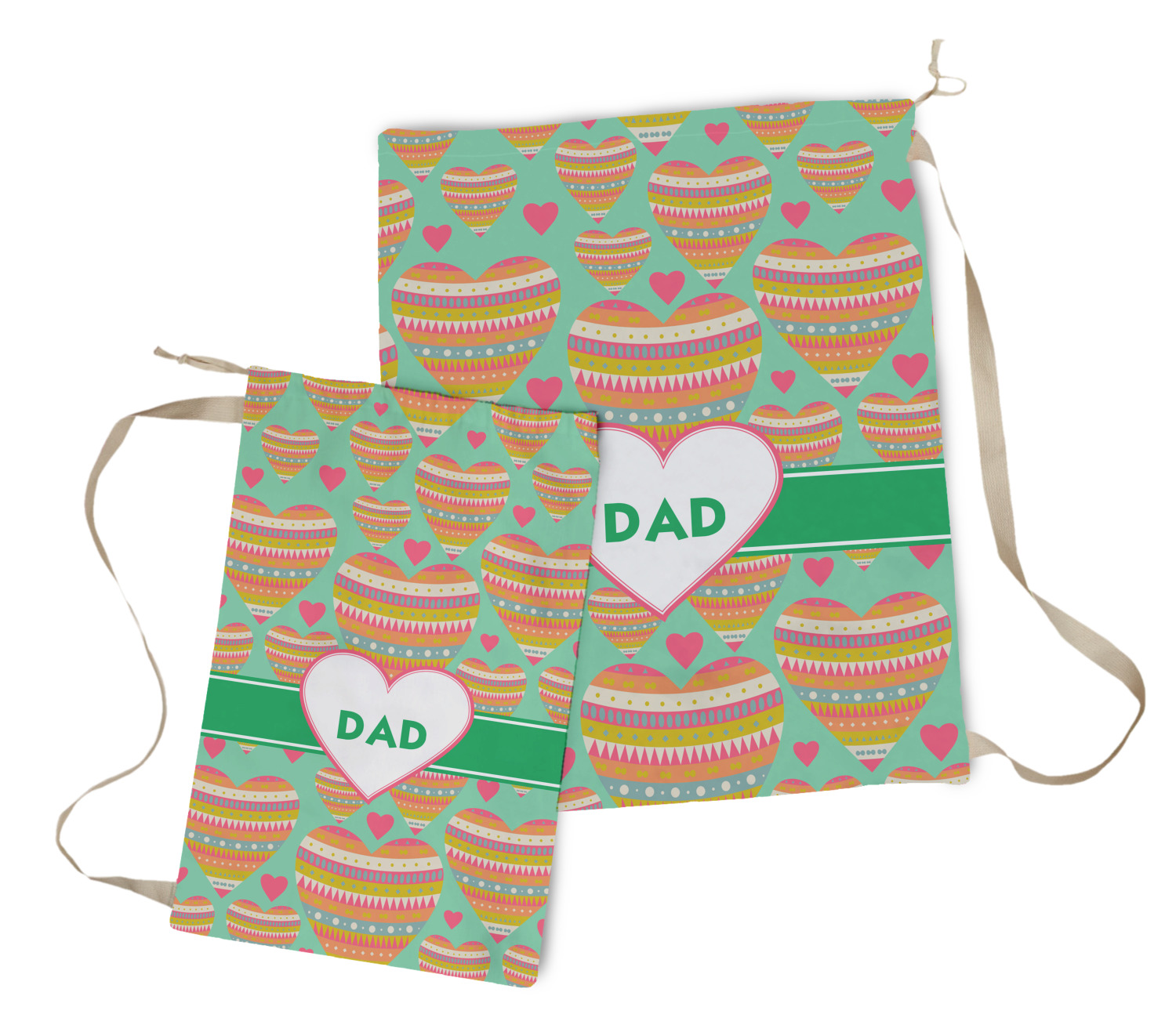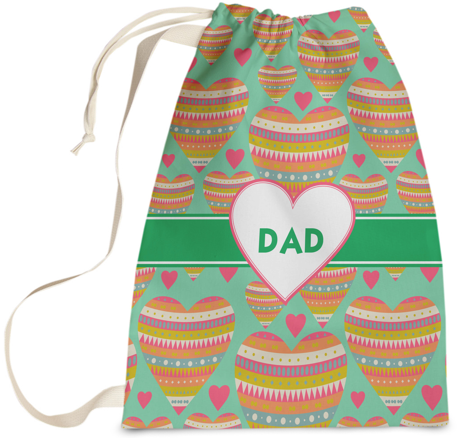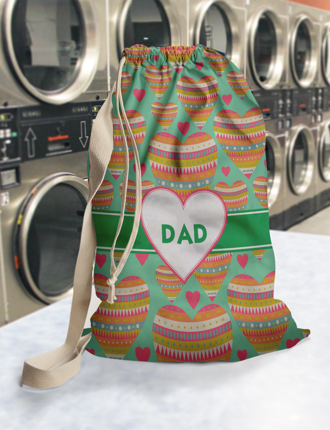 Carry your laundry in style with these customized laundry bags. Available in two sizes, featuring a natural colored woven strap and a cinch cord, these bags hold a lot of clothes or anything else you want to fit in them.