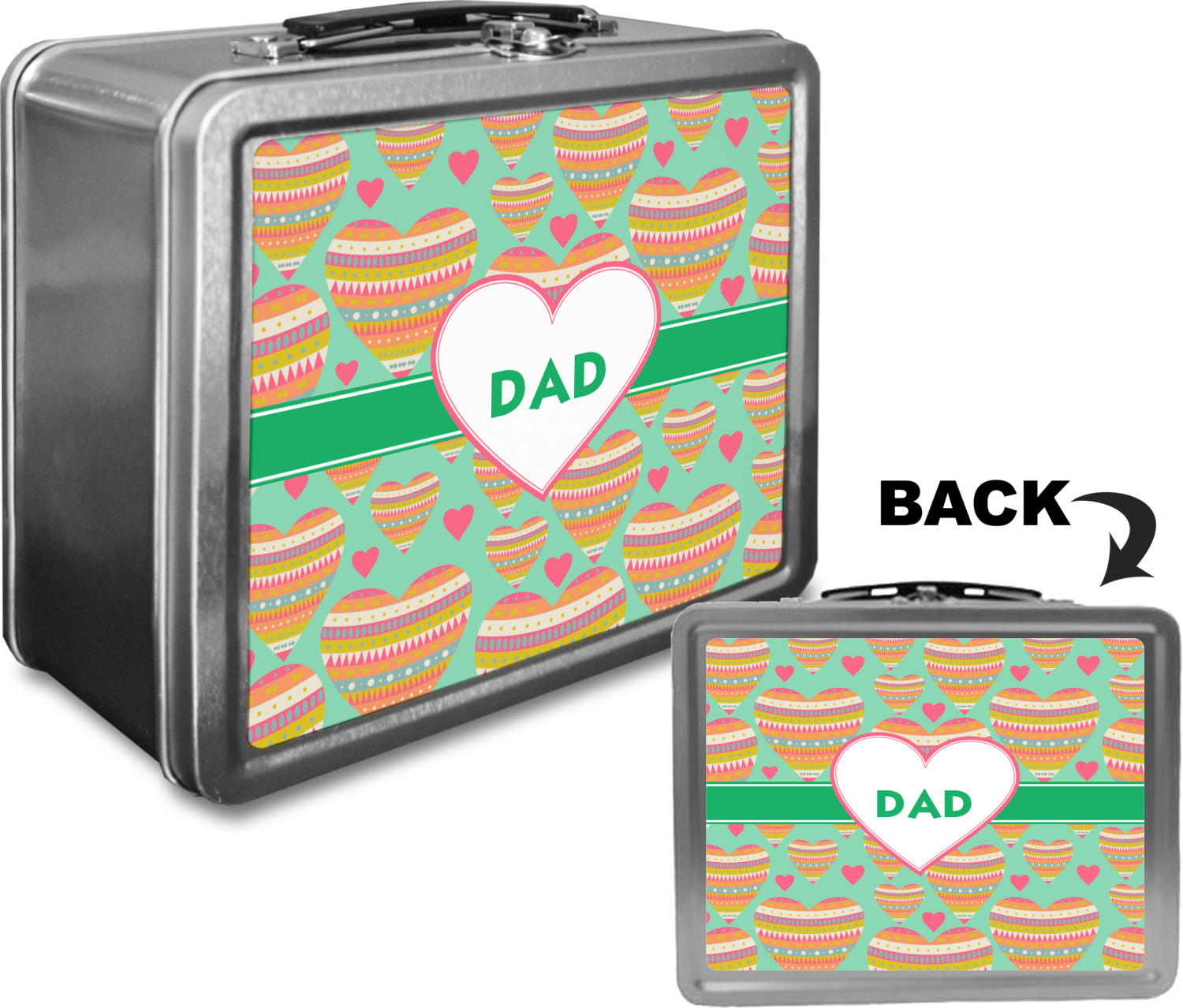 When customized, these boxes can also serve as a unique keepsake box! We print your design on both the front and back of this box, using a high quality matte vinyl, with waterproof inks that withstand the test of time. The designs are then machine cut, and adhered to the sides of the metal lunch container.