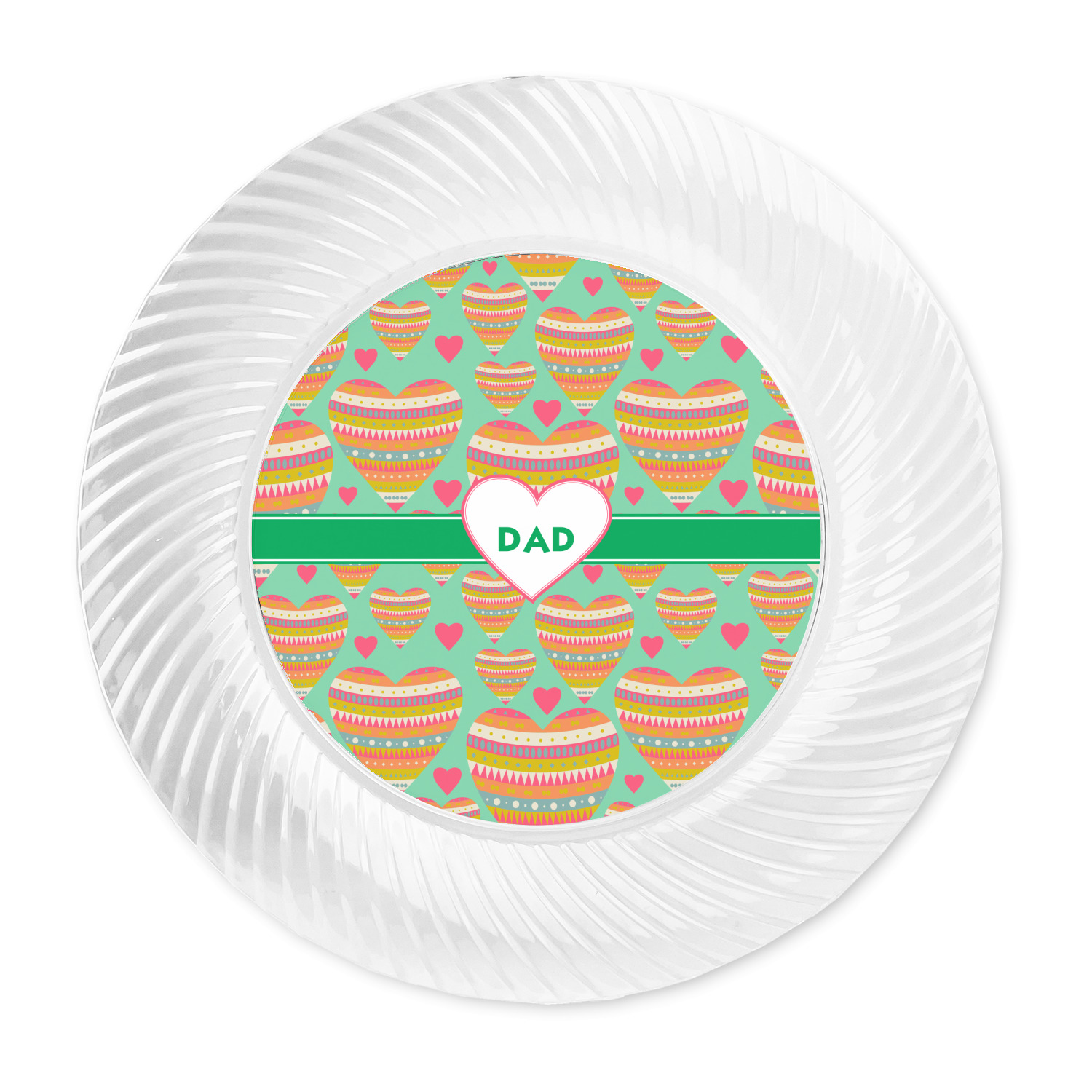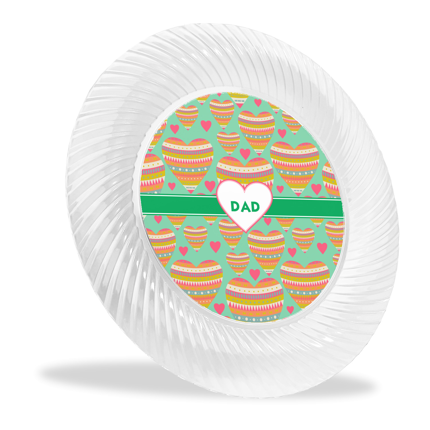 Made from a beautiful clear plastic plate as a base, your design is printed to the underside of the plate. The outside of these disposable plates has a classic swirl texture to it for a high quality look and feel.