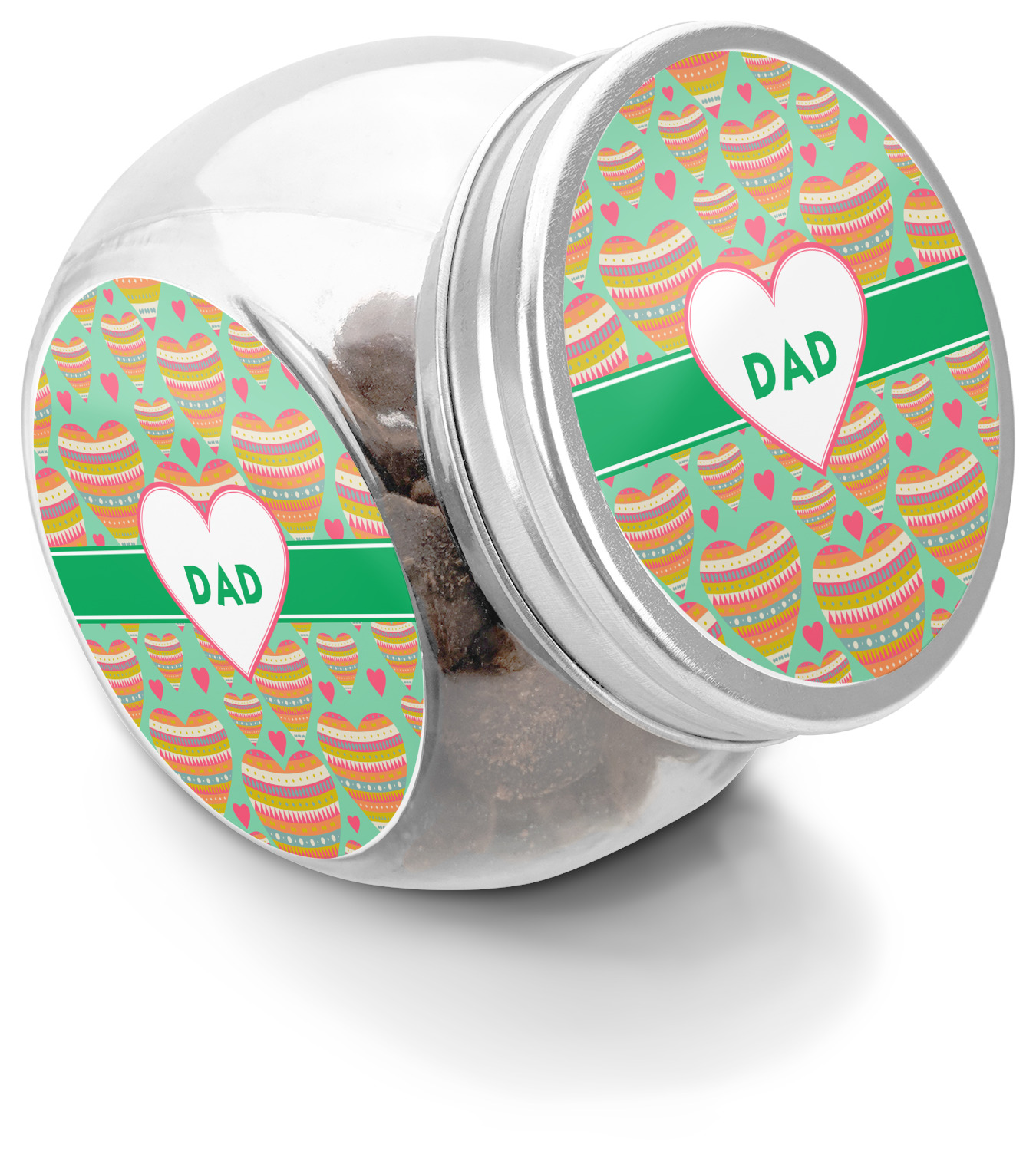 This treat jar is an excellent way to store treats for your favorite canine or feline. Moreover, their delicate, classy appearance makes them a tasteful addition to your countertop's décor. Crafted from clear glass, its unique construction and silver metal, screw-on lid allows for quick and easy access. Three, permanent, vinyl stickers are applied to both sides of the jar and lid, presenting your personalized design. The base of this glass, dog treat jar is 3.4" x 4.75", and the jar stands at 5" tall. Though on the smaller side, this jar is best suited for smaller treats or training treats.