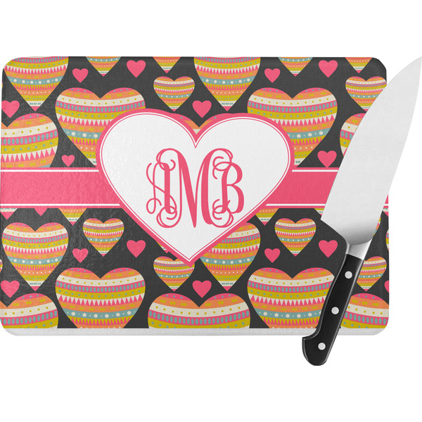 This Valentine's Day design looks sweet enough to eat. Multicolored hearts, each one filled with stripes and triangles and patterns of all kinds, are set on a crisp white background.