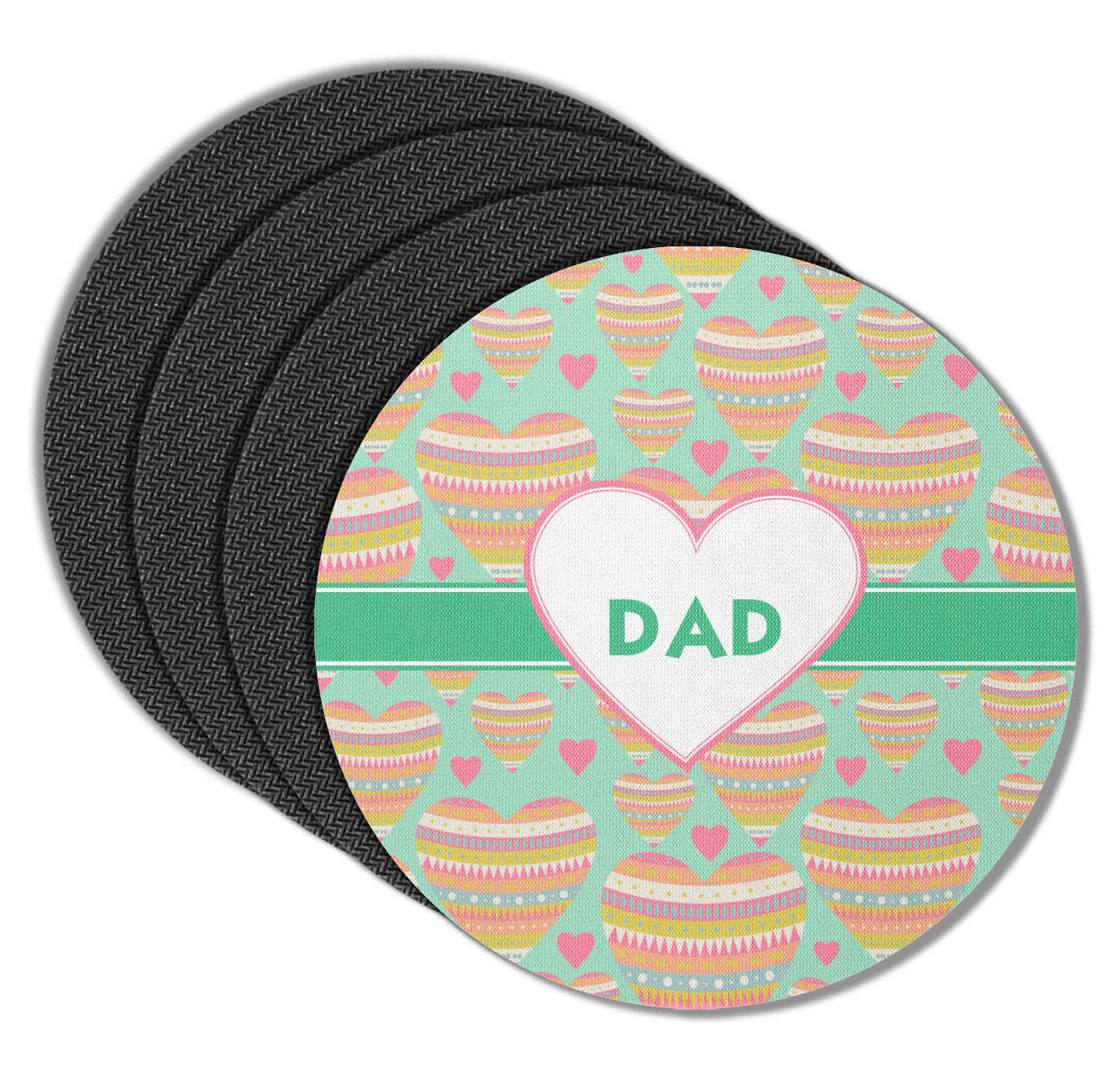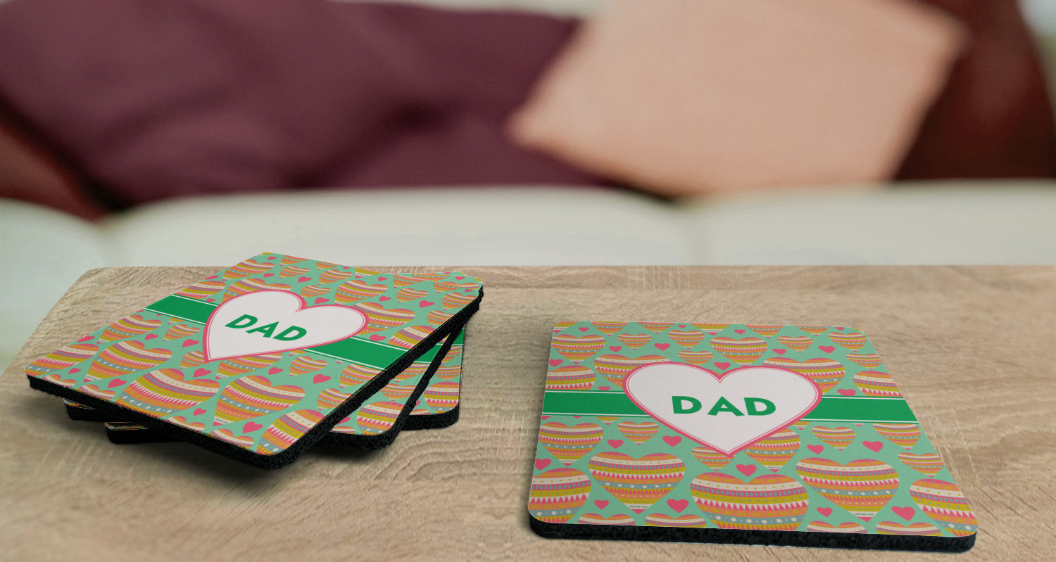 These drink coasters have a smooth, polyester top and a textured, rubber backing on its bottom. The non-slip rubber backing underneath works to keep any spills at bay. At 4 by 4 by 0.25 inches thick, these custom coasters are a suitable size for most drinkware. Your personalization is displayed atop the face of the cup coaster. We sell these rubber coasters in two different shapes: square and round. You can buy each shape as singulars or as a set of 4.