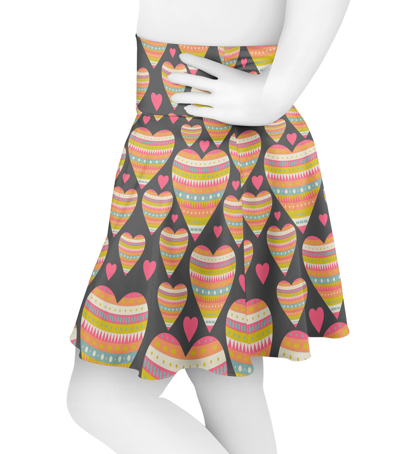 This Valentine's Day design looks sweet enough to eat. Multicolored hearts, each one filled with stripes and triangles and patterns of all kinds, are set on a crisp white background.