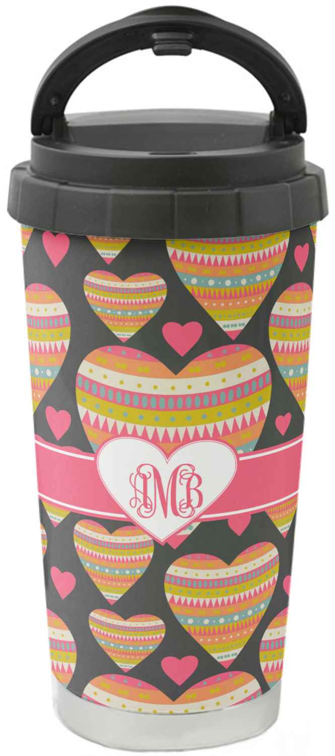 This sleek and tapered 16 oz stainless steel travel cup is a perfect fit in the hand. With the strip of visible stainless steel on the bottom, you'll be feeling classy!