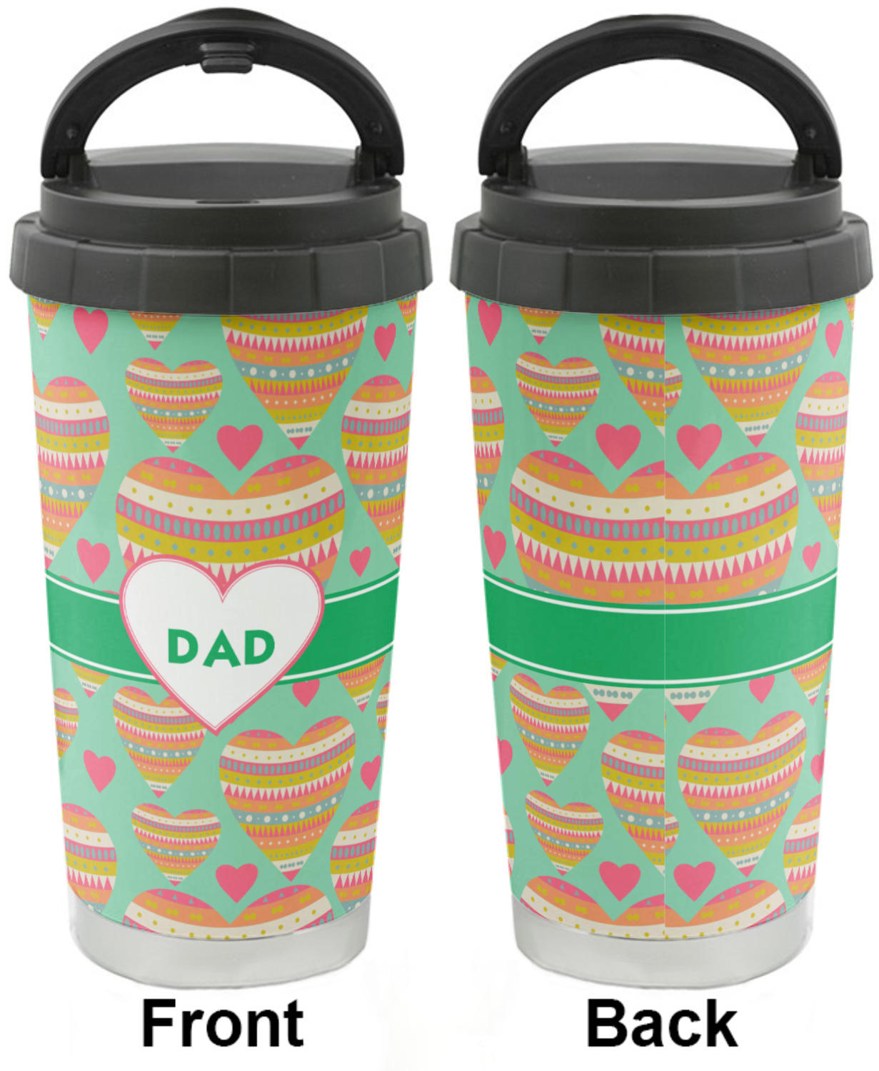This sleek and tapered 16 oz stainless steel travel cup is a perfect fit in the hand. With the strip of visible stainless steel on the bottom, you'll be feeling classy!