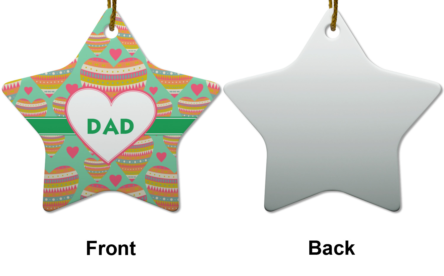 Have a happy holiday and share the joy of Christmas with your loved ones by hanging up personalized ceramic ornaments! Ornaments add a touch of who you are and the things you love onto the Christmas tree! Create custom ornaments for the kids and have them hang up their own star with their name, or pay remembrance this holiday to missed loved ones with our ceramic heart ornament. Browse many of our unique designs and customize them the way you'd like! From monograms, logos, and patterns, we have it all! You can even upload a photo of your family for us to print onto the ornament! The possibilities are endless!