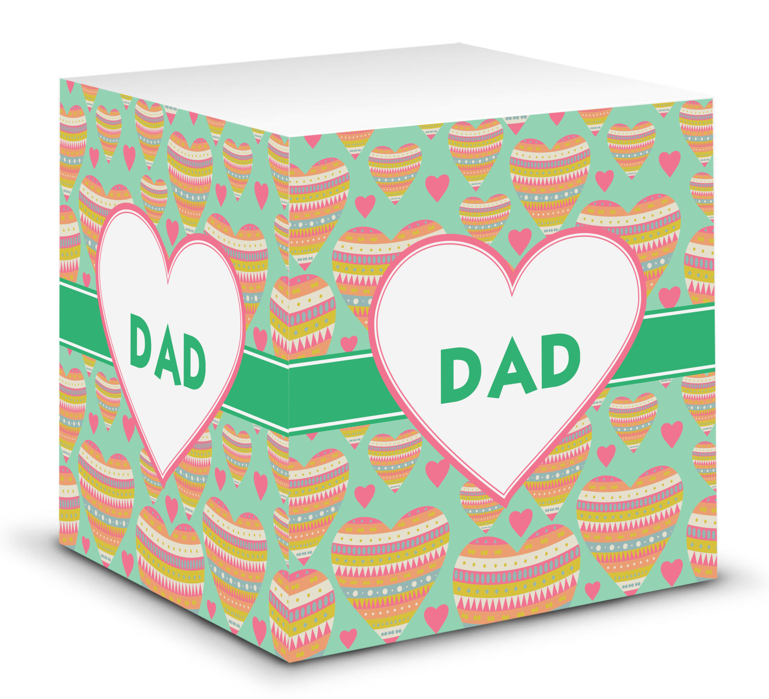 This note cube features 700 sheets of matte, white paper. Each sheet measures at 3.5 by 3.5 inches and has an adhesive strip at its top. Your personalized design is displayed on all four edges of the sticky pad.