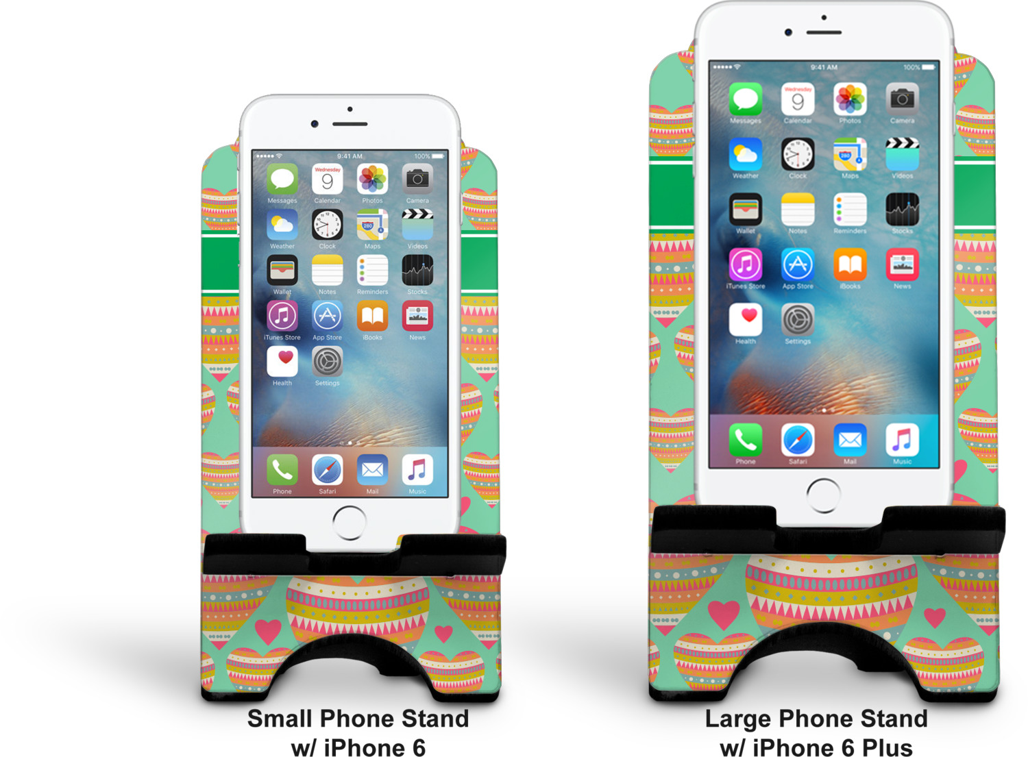 To meet your needs, we offer four variations of this IPhone stand. The backboard of the first version is shaped as a plain, yet sleek rectangle, and is available in two sizes. Our smaller size is approximately 4 by 3.25 by 7 inches, while the larger model is 4 by 3.77 by 8.5 inches. Alongside this model, we also provide you with a more decorative option. The upper part of our second version features a curved edge, for a classy, suave appearance. This phone holder is also sold in two sizes: a smaller version, which is 4 by 3.25 by 7 inches, and our larger model, which is 4 by 3.77 by 8.5 inches. Both models will support large phones, but the larger model is better if you wish to proudly display your personalized design.