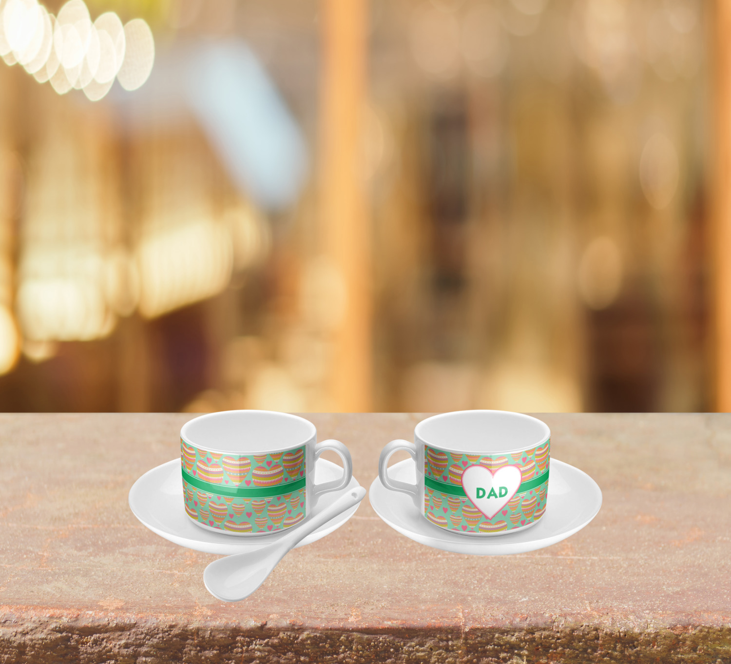 Personalize your cup with the perfect design! The white ceramic makes for a bright background to whatever personalization you decide to add to your little cup. Give your tea or coffee some class! Choose from thousands of patterns and fills in our system to fit your personality! Change whatever elements you like from the text to the ribbons to the graphics.