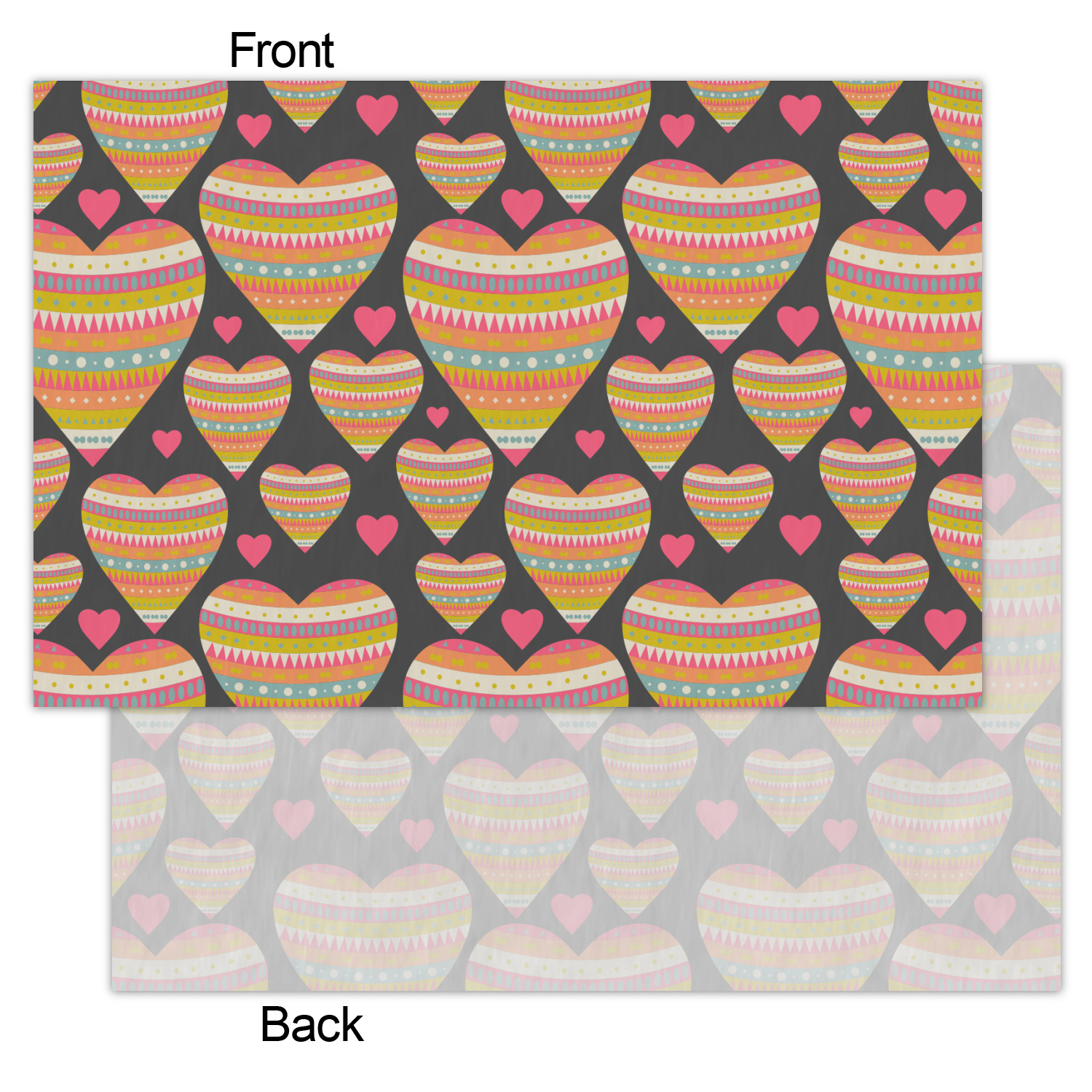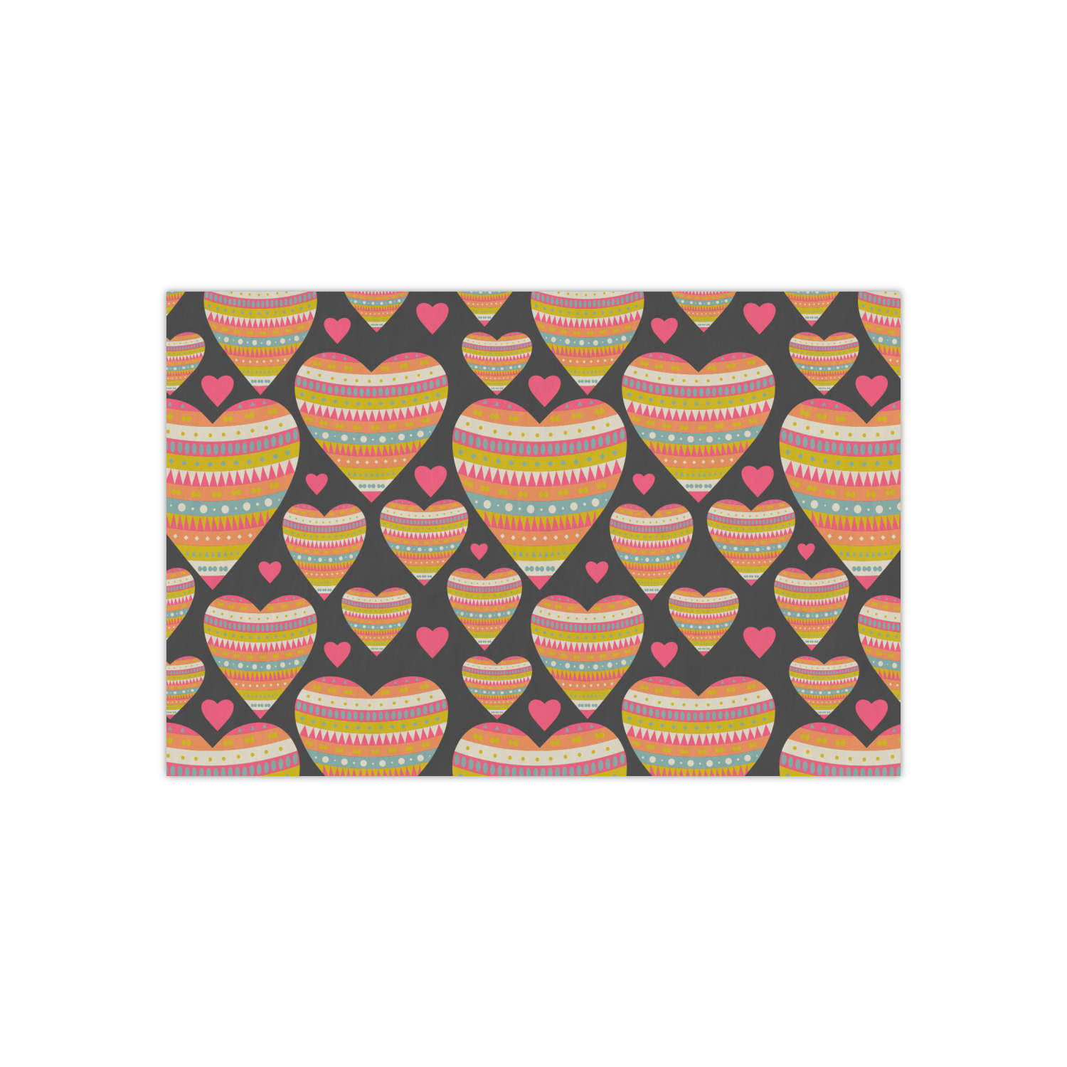 This Valentine's Day design looks sweet enough to eat. Multicolored hearts, each one filled with stripes and triangles and patterns of all kinds, are set on a crisp white background.
