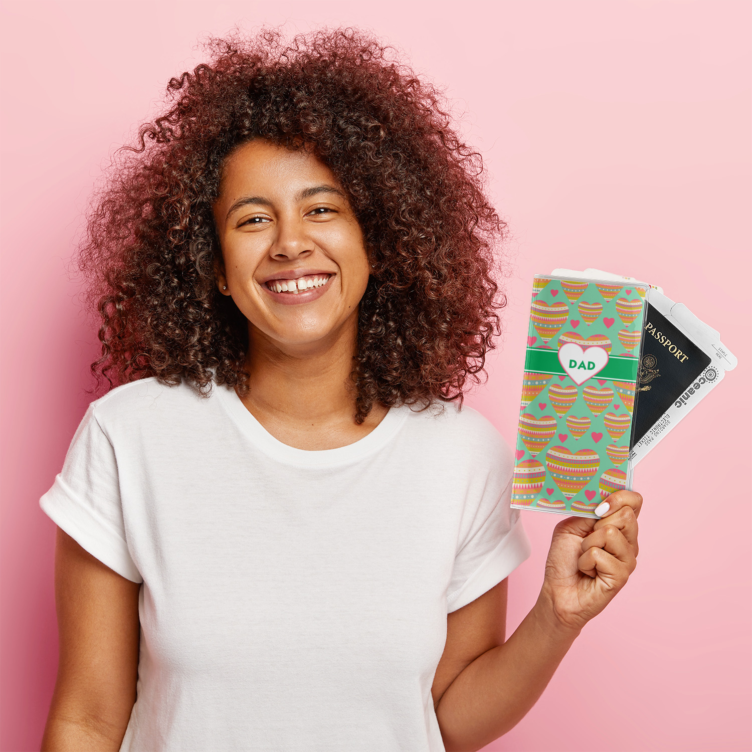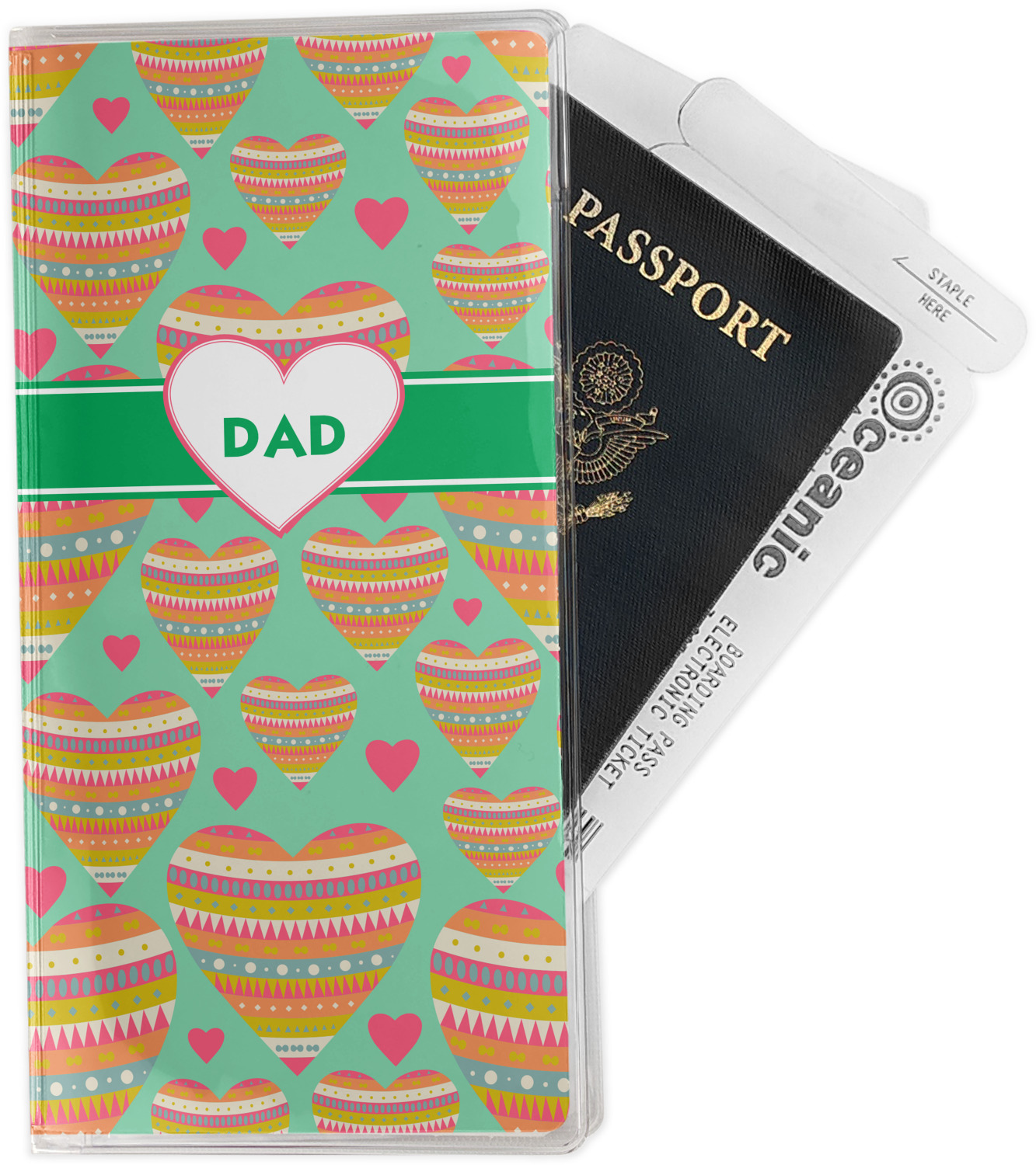 This document holder is really sturdy and has your personalized design inserted right behind all of your nifty pockets, so you can see it on the front and back covers. There are two large pockets and two shorter pockets inside. The larger pockets are tall enough to keep your boarding pass nice and straight. The smaller pockets (on top of the large pockets) are large enough to fit your passport, credit card, or ID.