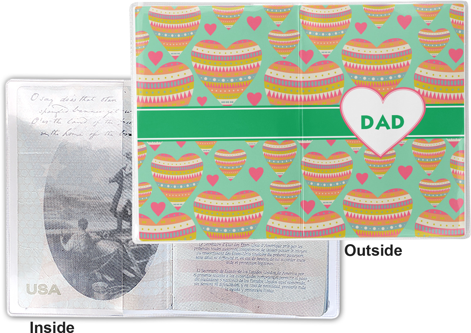 This cover is made of a sturdy clear vinyl with a personalized vinyl insert inside. There is a large and a small pocket on either side to hold the covers of your passport easily and firmly. The passport holder is approximately 7.5" x 5.25", the perfect size to snugly fit your passport. This slim cover is the perfect way to protect your passport without being one more bulky item you have to carry.