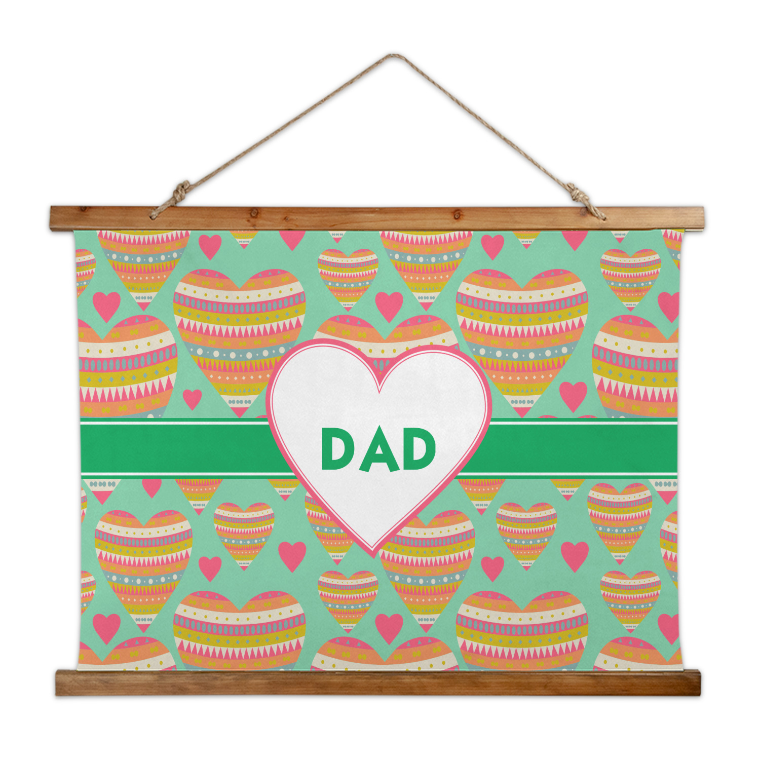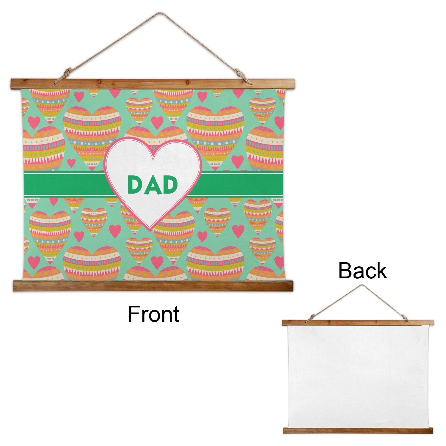Made in two different orientations - portrait or landscape - both are 26" x 36". Your design is printed on a high quality polyester fabric with hemmed edges. The wood on the top and bottom of the tapestry is 1.25" tall and 0.25" thick and there are two pieces on top and bottom which sandwich the fabric.
